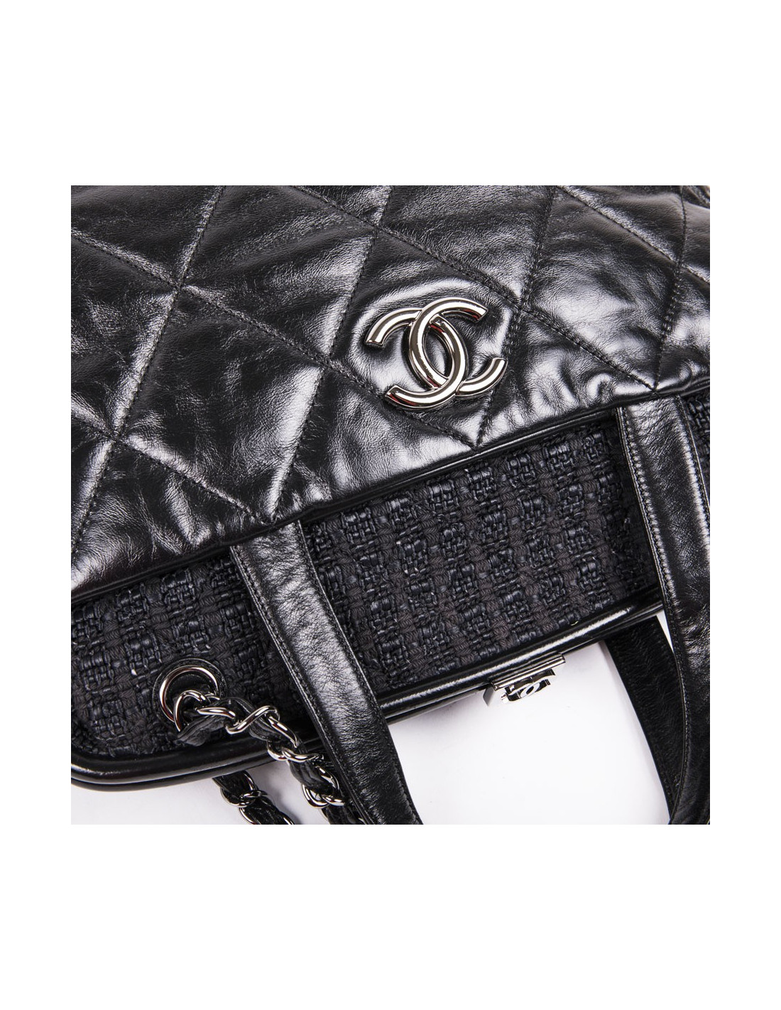 Sac CHANEL Portobello en cuir matelassé noir vieilli et tweed gris foncé