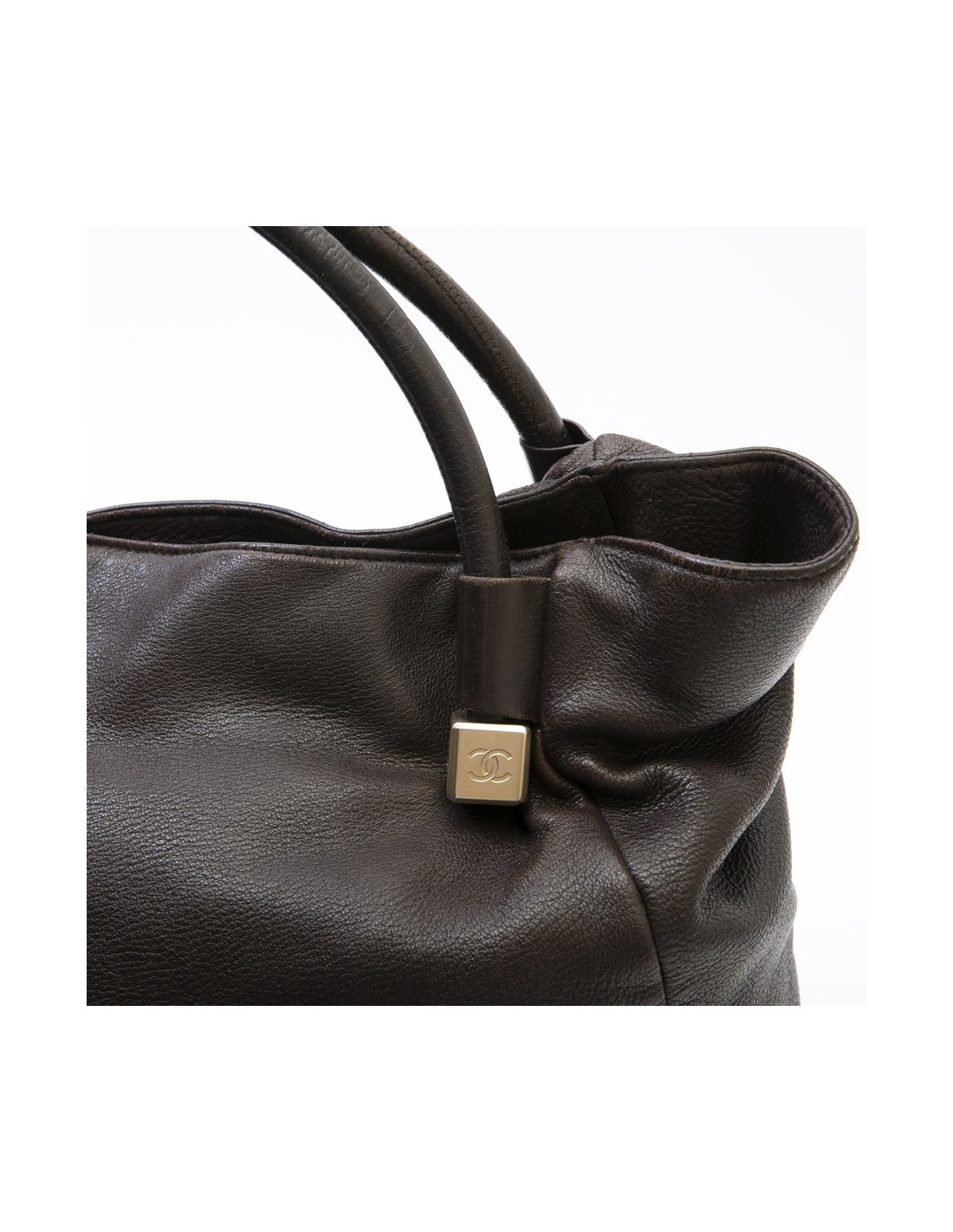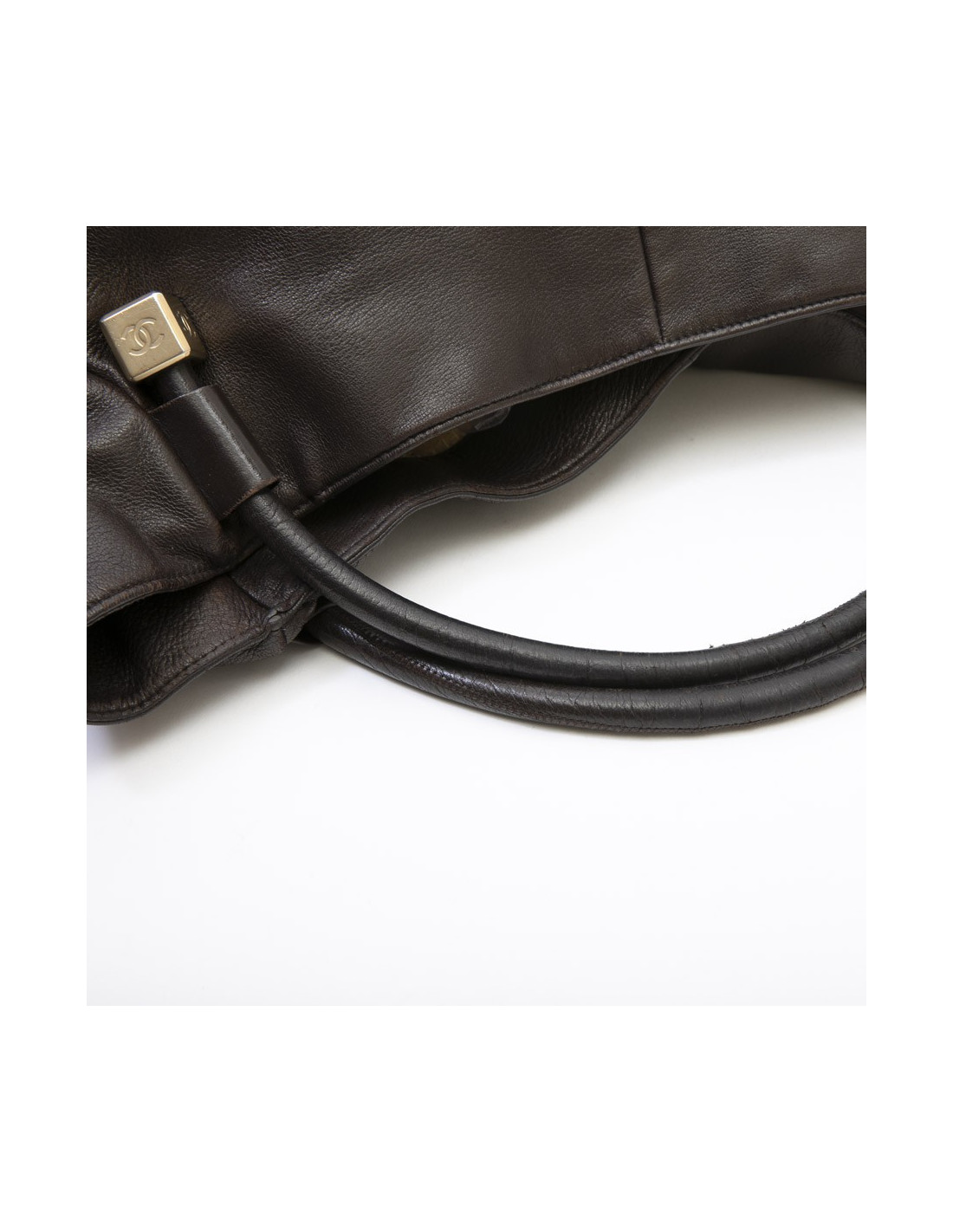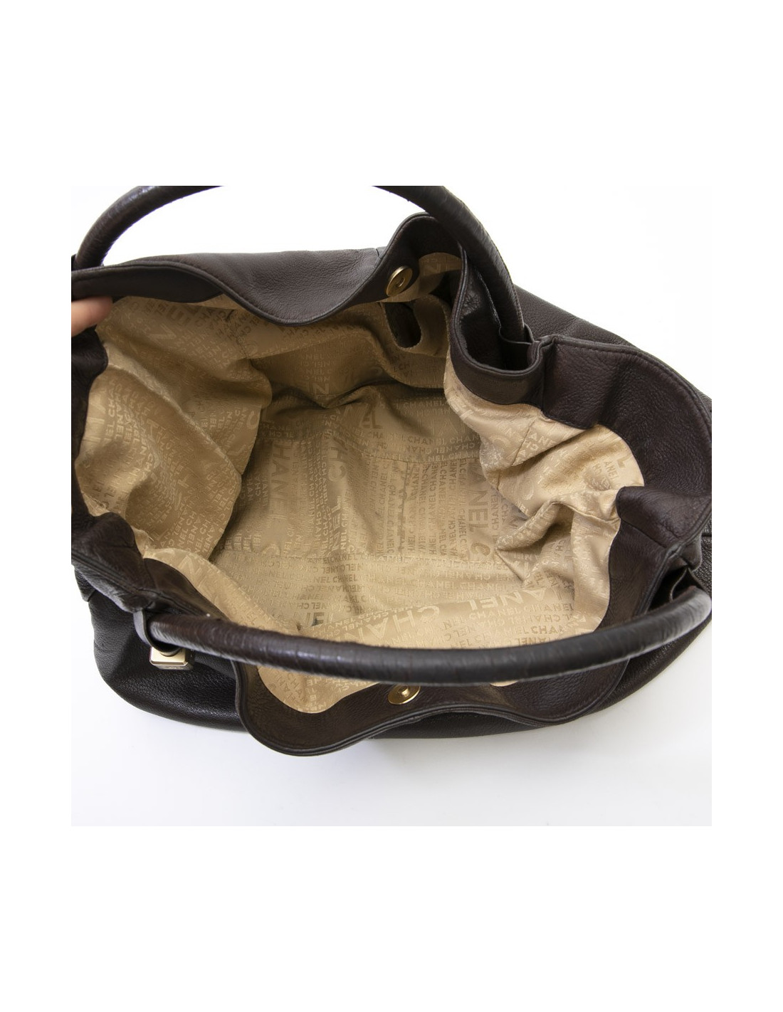 Sac besace CHANEL en cuir marron foncé