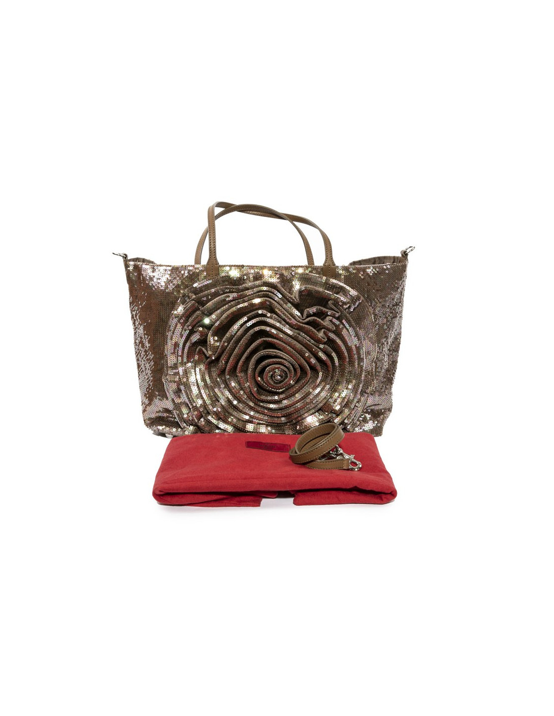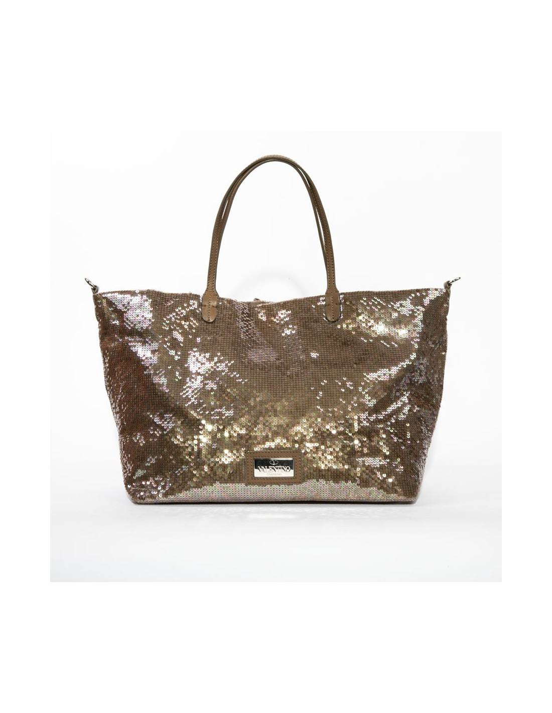 Sac cabas VALENTINO à sequins marron reflets roses