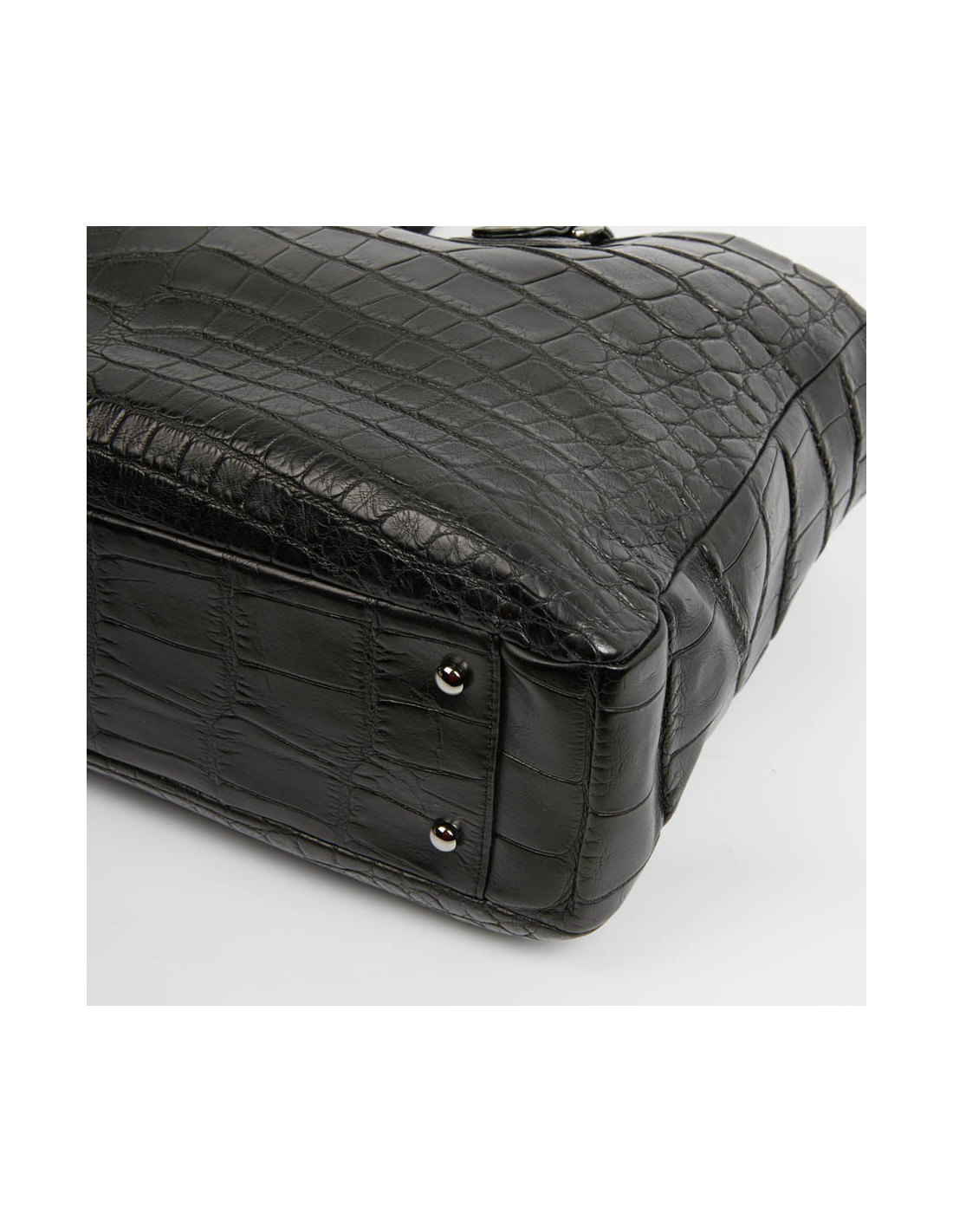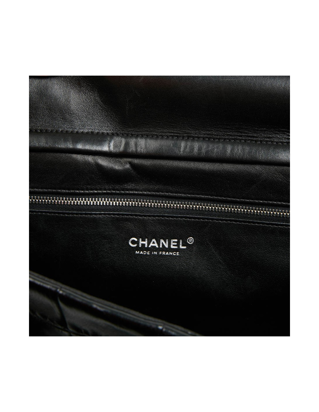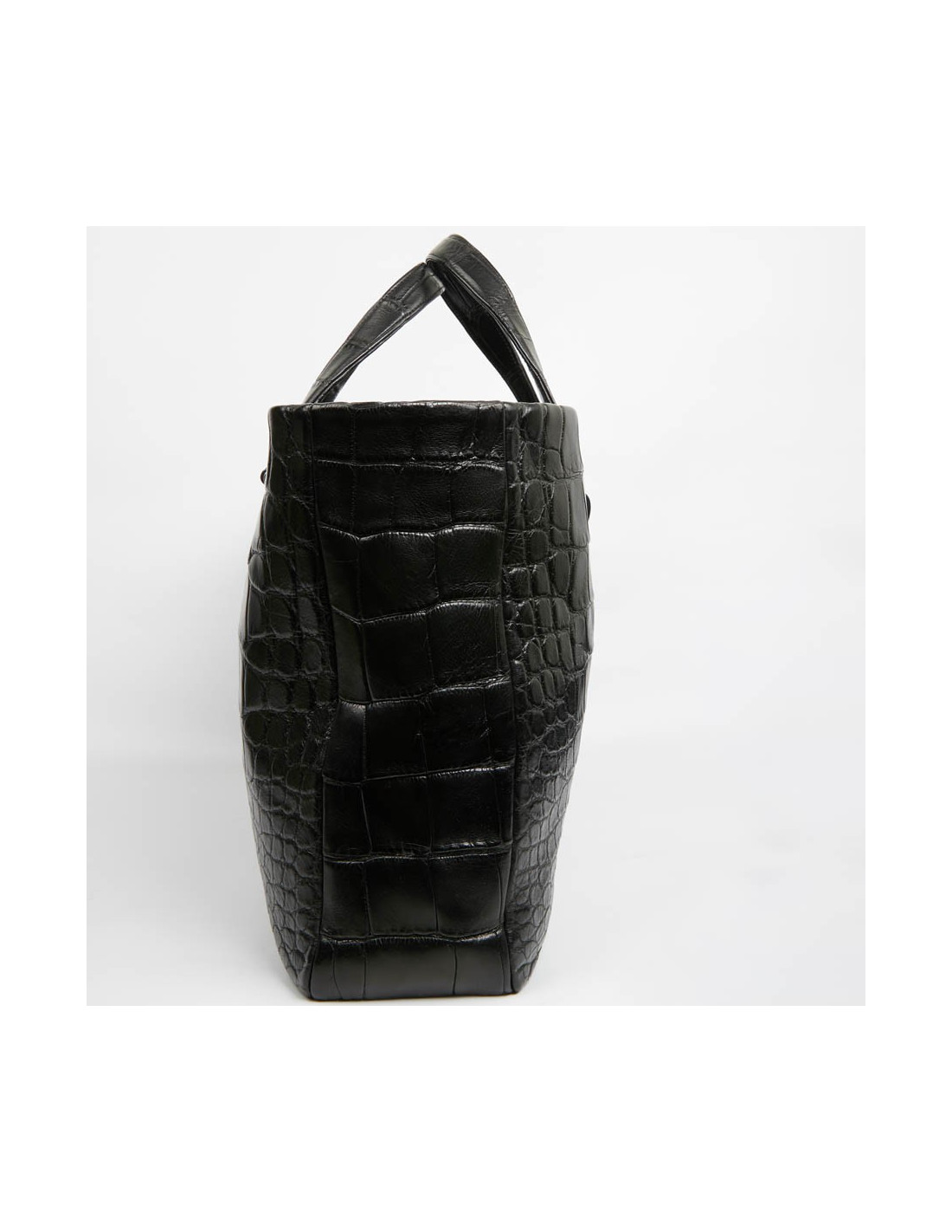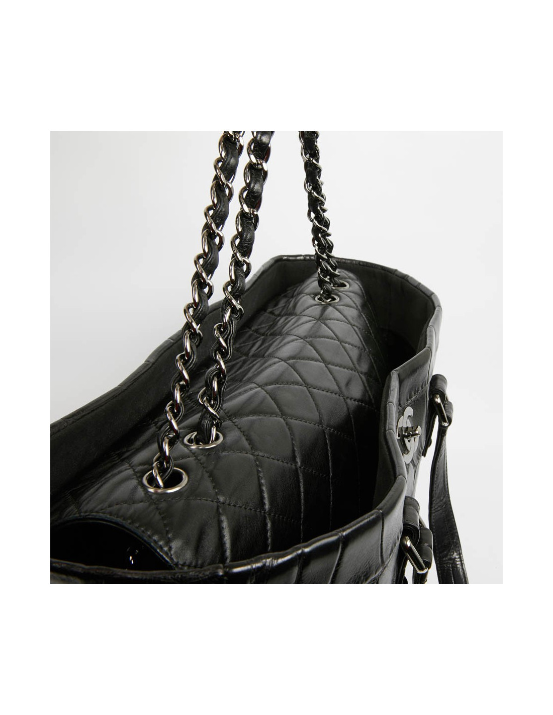 Grand cabas CHANEL en crocodile noir. La bijouterie est en argent palladié. Il est doublé en cuir lisse noir. Un grand espace de rangement, une poche fermée par un zip ainsi que deux poches plates (dont une pour smartphone). Possibilité de le porter de deux manières, à la main avec sa double poignée en crocodile ou à l'épaule avec sa chaine en argent entrelacée de cuir noir (signature de la Maison CHANEL). Il est en parfait état d'usage (micro usure du coin gauche, voir photo).