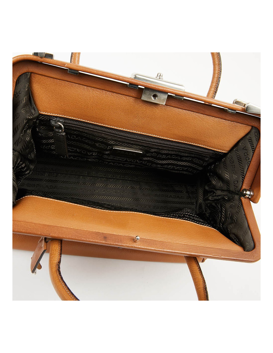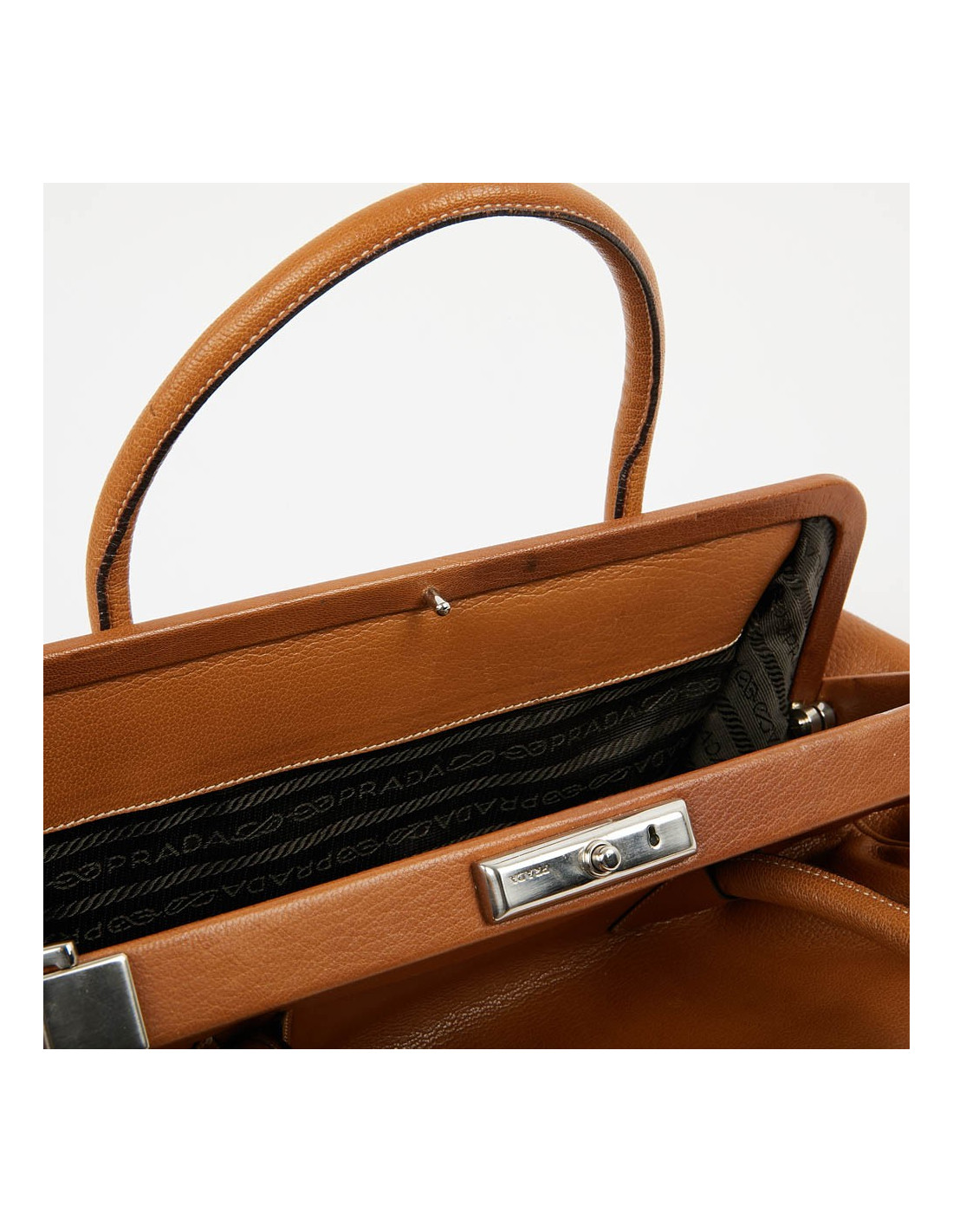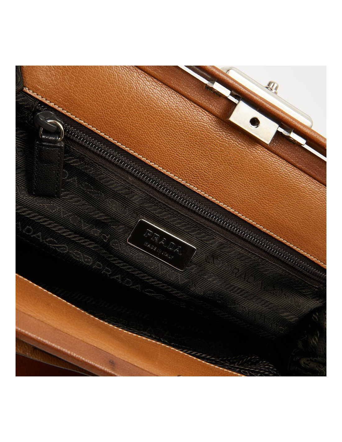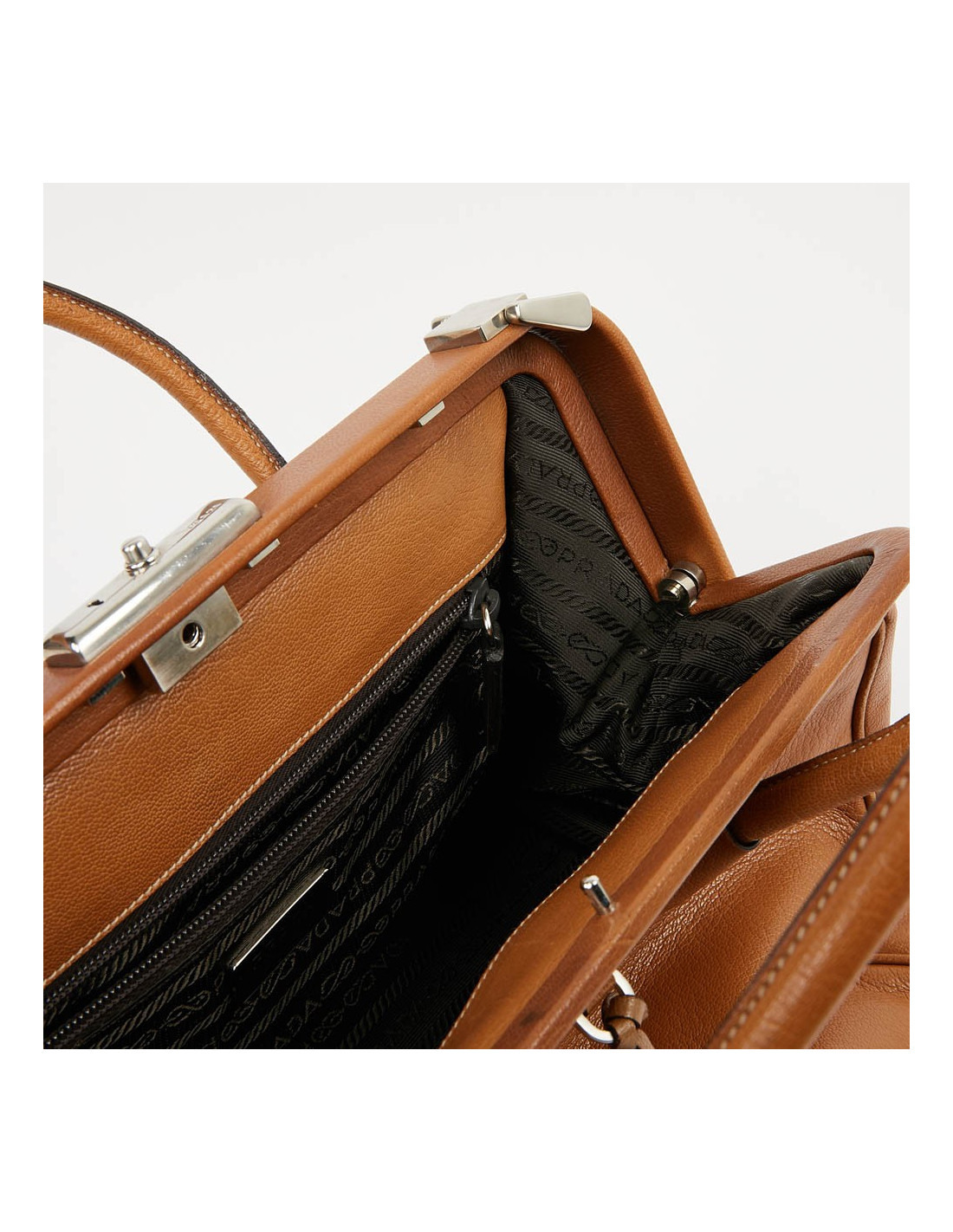 Mallette PRADA marron clair, détails