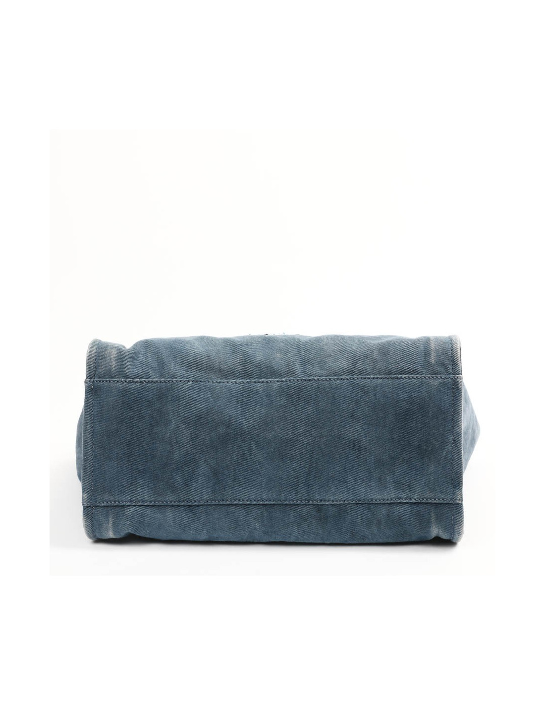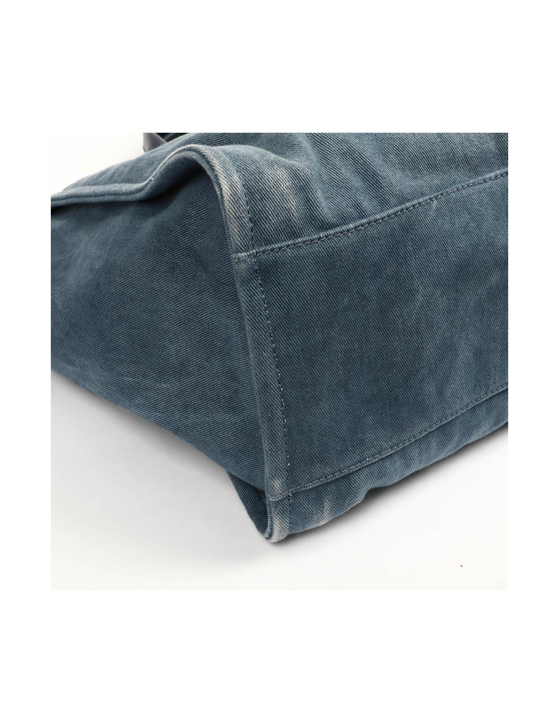 Il se porte à la main par deux poignées en cuir et à l'épaule à l'aide de deux bandoulière en chaine argent palladié, entremêlée de toile bleu. C'est un fermeture par bouton pression.