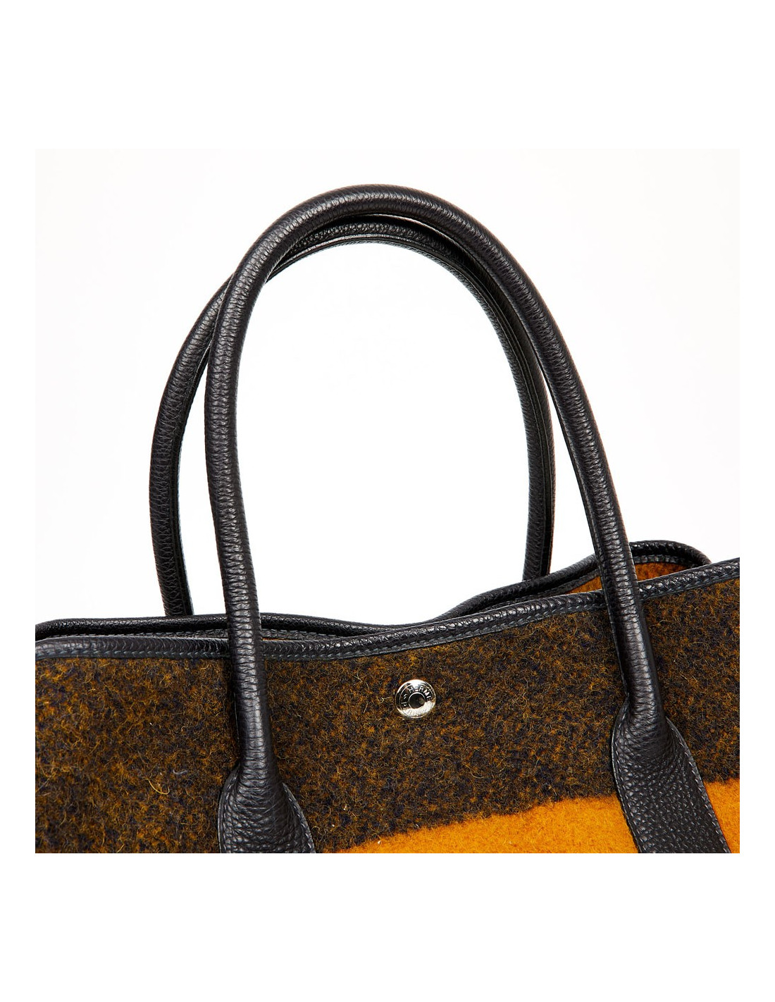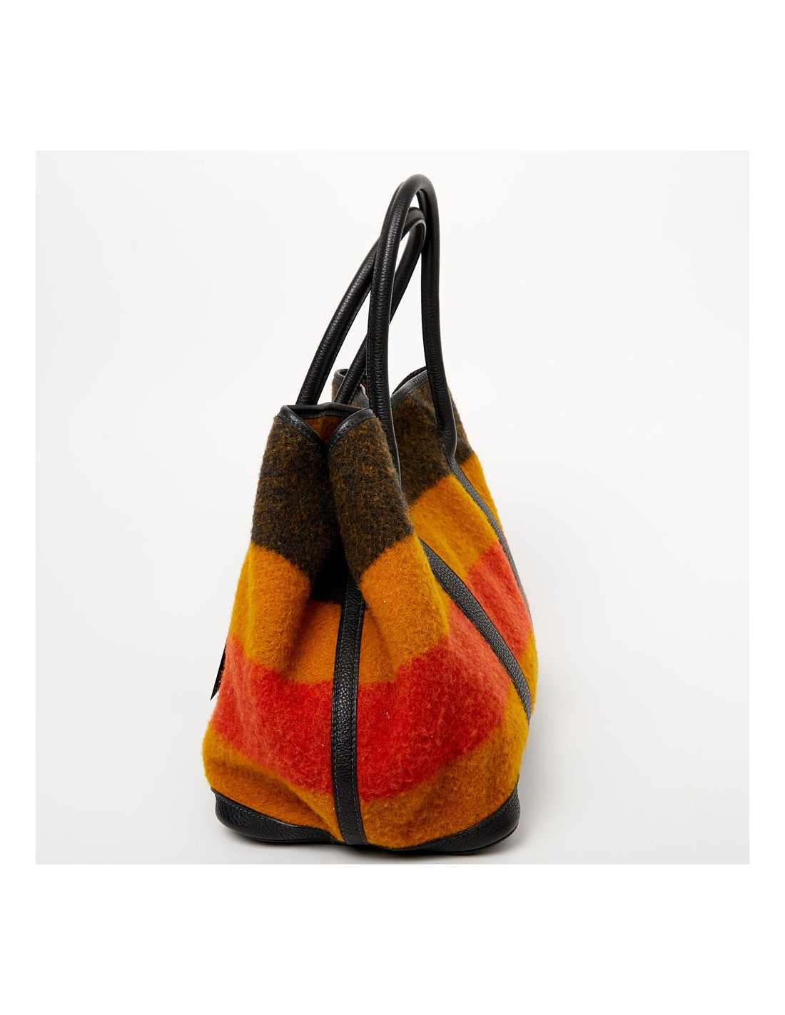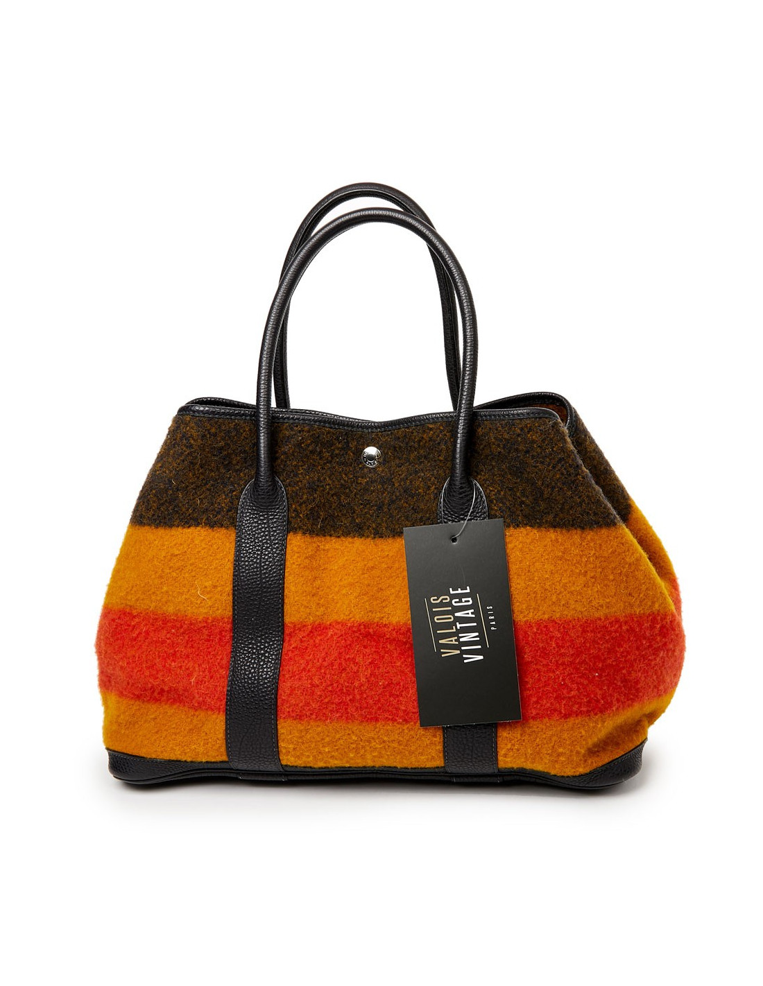 Sac Hermes modèle Garden Party en cuir Togo et laine orange, jaune et marron. Il est gravé " Hermes Paris made in France" à l'intérieur du sac (partie en cuir).