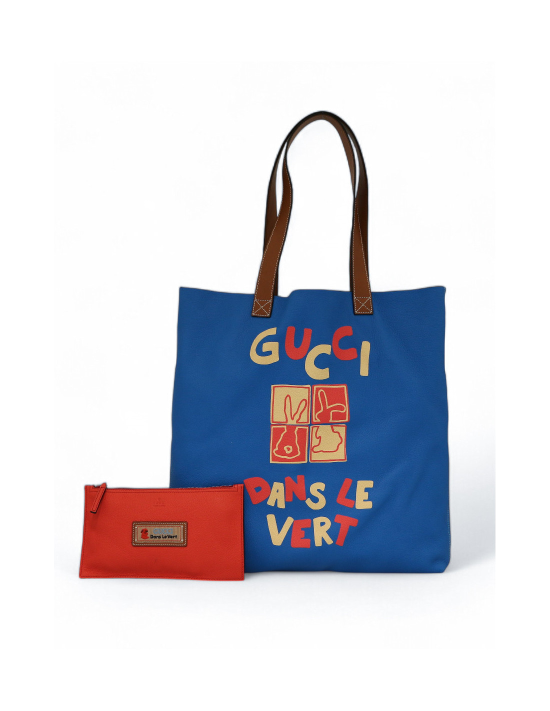 Détails : rare cabas en cuir souple bleu. Ce modèle en édition limitée a été spécialement conçu pour célébrer le Nouvel an Chinois 2023, placé sous le signe du lapin, représenté sur le sac.