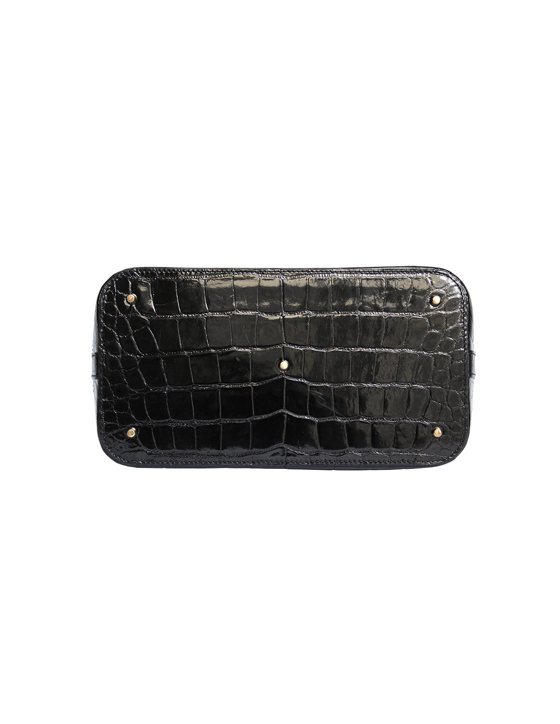 Ce magnifique sac "Alma" Louis Vuitton, est en cuir exotique alligator noir brillant.
