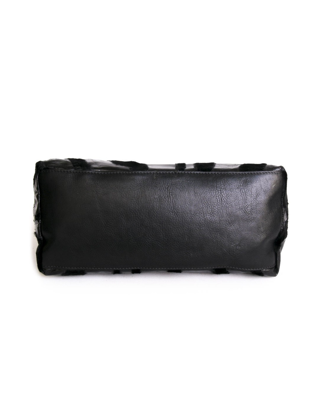 Le fond extérieur du sac est en cuir grainé noir.