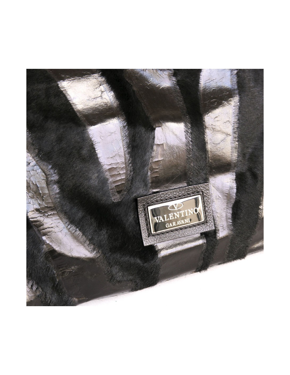 Sac cabas VALENTINO cuir façon poulain et vernis noir