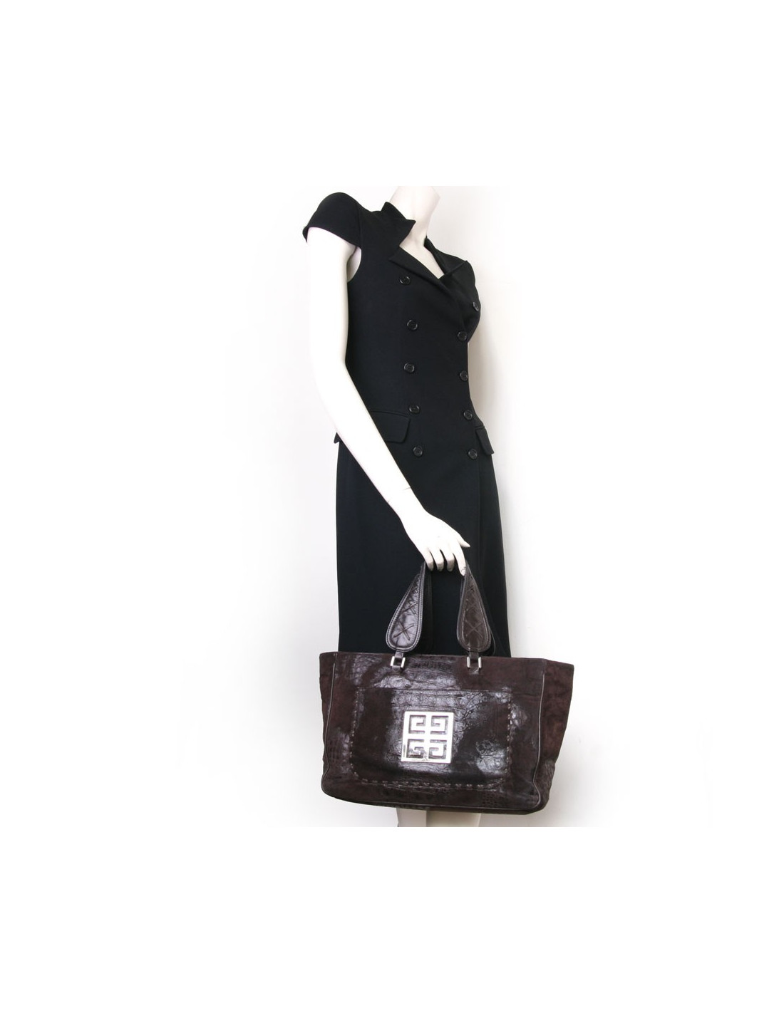 Sac cabas GIVENCHY veau velours marron effet crocodile
