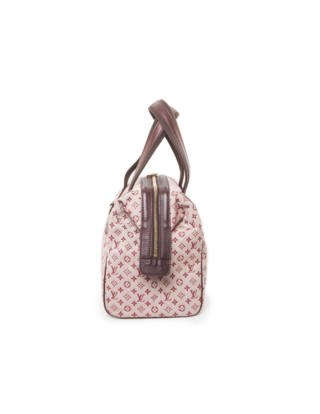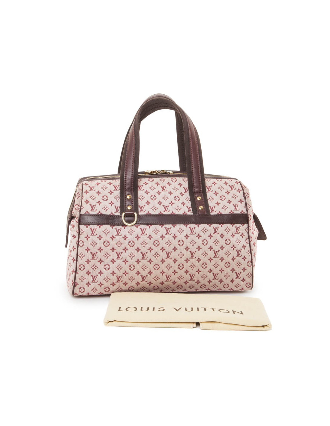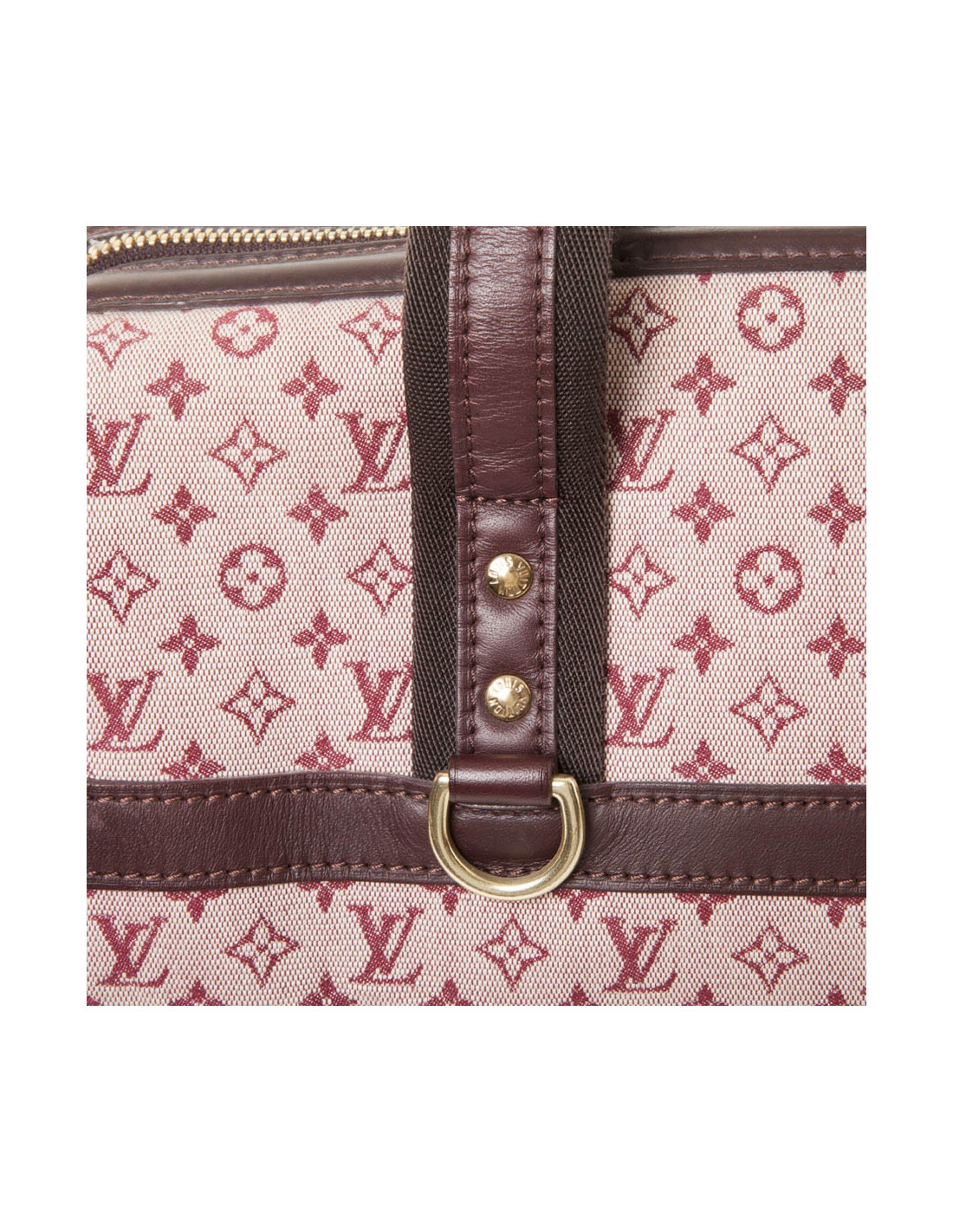 Il a une fermeture zippée. La bijouterie est en laiton. L'intérieur est en toile rose pâle, une grande poche fermée. Les finitions sont en cuir bordeaux. Il est en très bon état. De Très légères traces sur les coins du sac.
