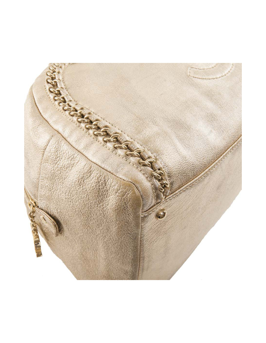 Sac CHANEL bowling GM cuir vieilli doré