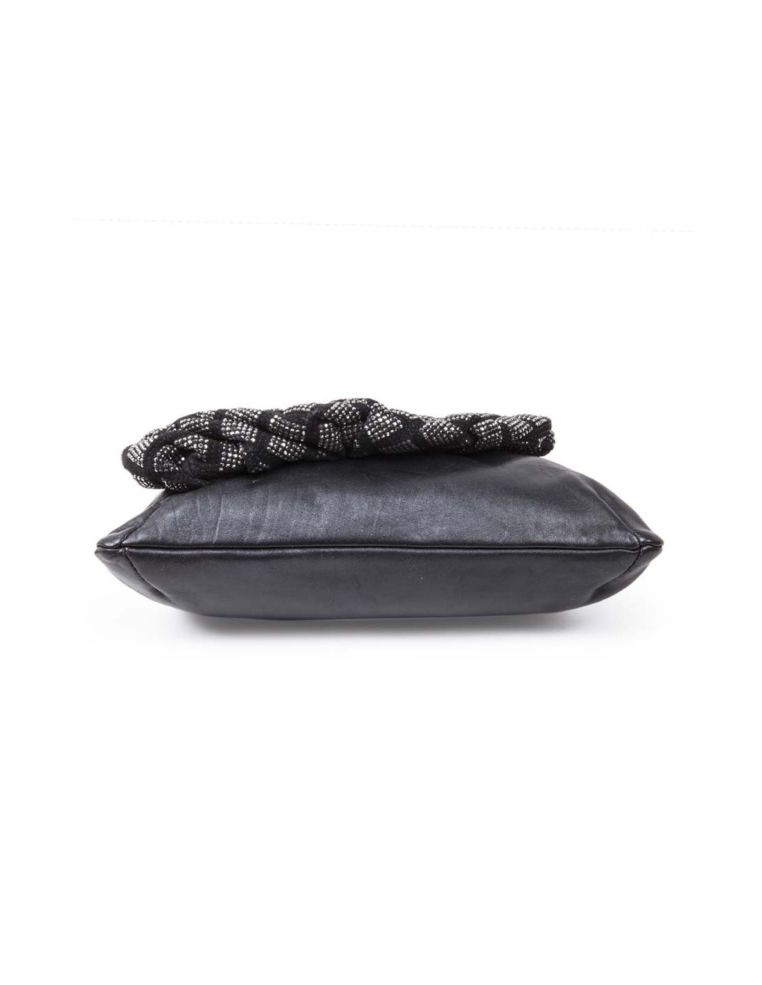 Il se porte à la main par 2 petites poignets ou à l'épaule ou crossover grâce à une bandoulière amovible. accastillage doré vieilli. L'intérieur est doublé de satin noir avec 2 poches dont une zippée.