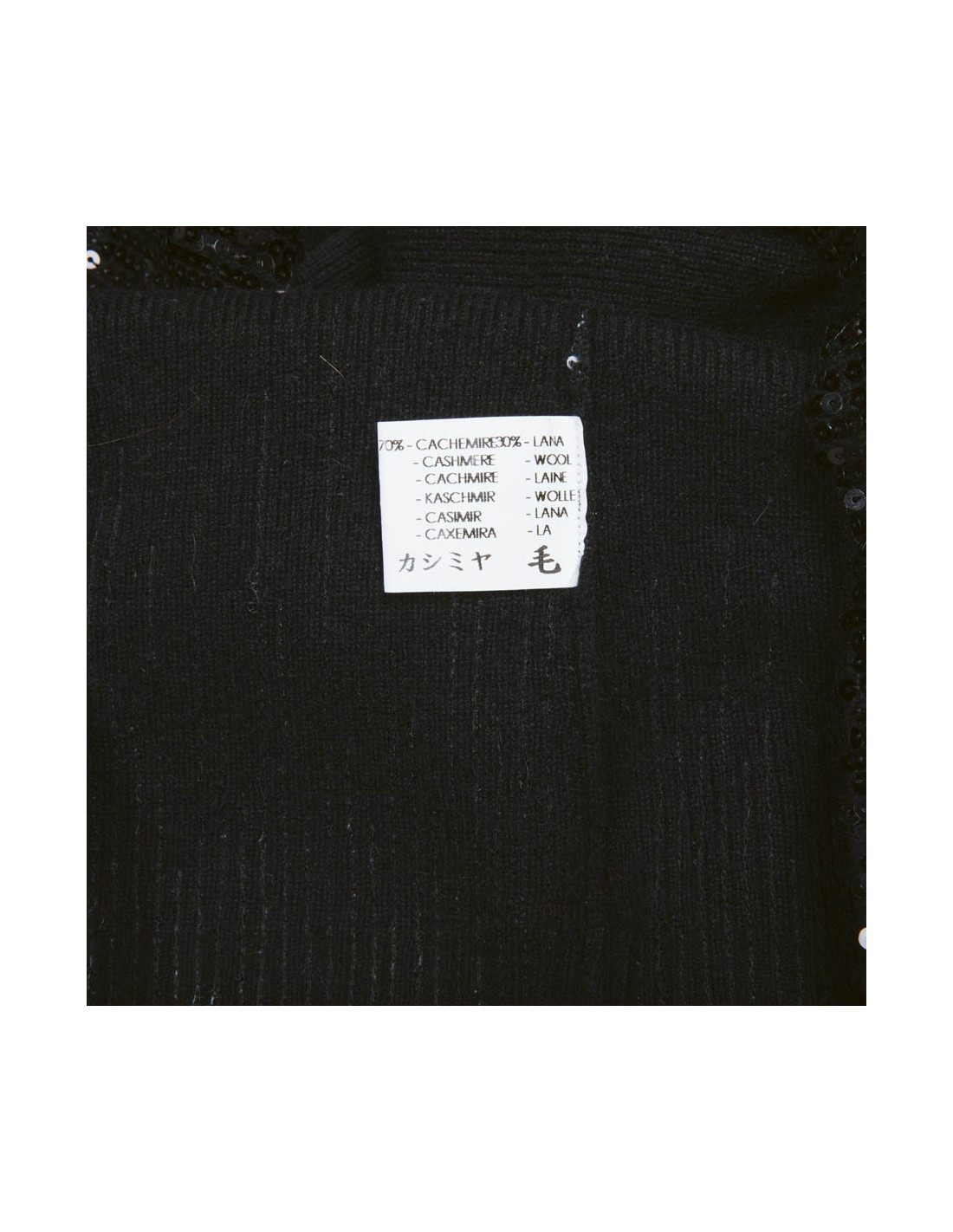 Pull taille 44 Valentino noir avec des sequins noirs au niveau des manches et de la taille. 70% cachemire 30% laine. Les manches sont raglans et 3/4.