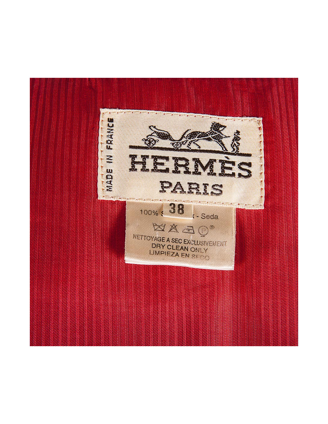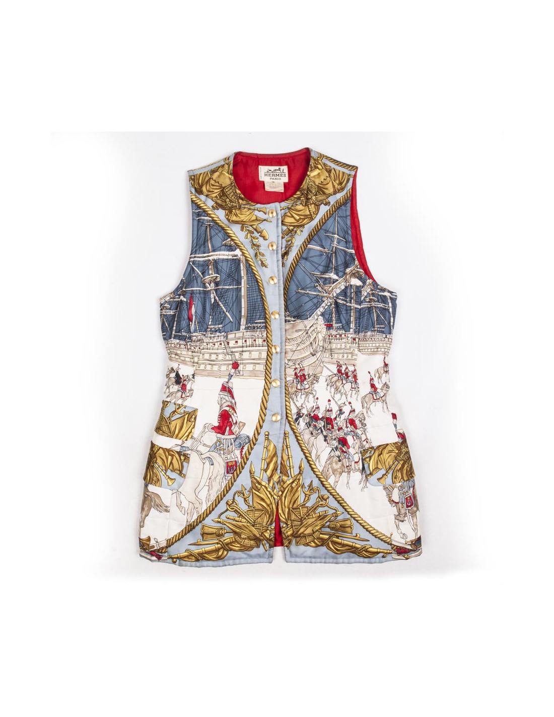 Veste longue sans manche HERMES taille 38 FR en soie. "Marine e Cavalerie 2 Pluviose An III 1795" (sort du nettoyage)