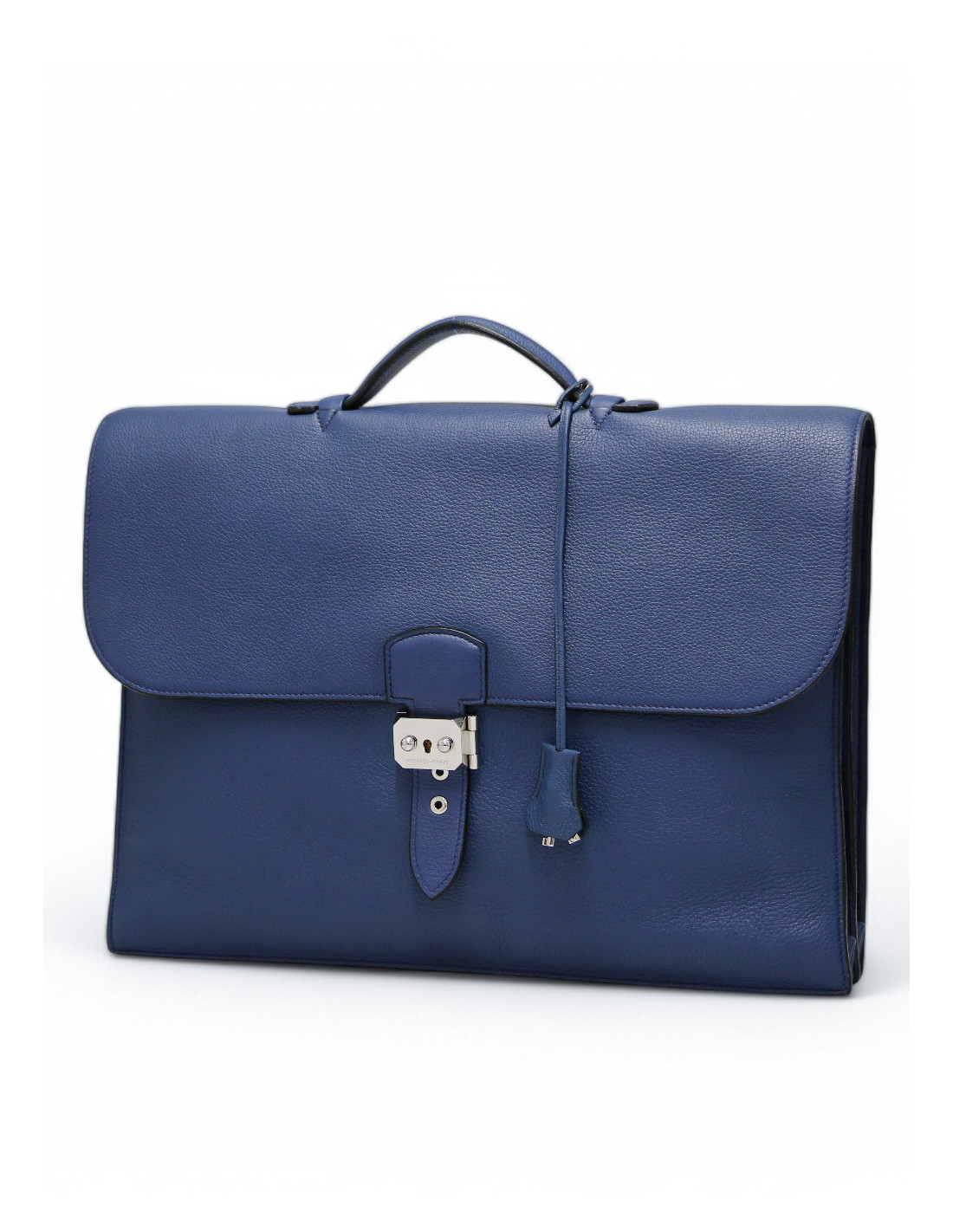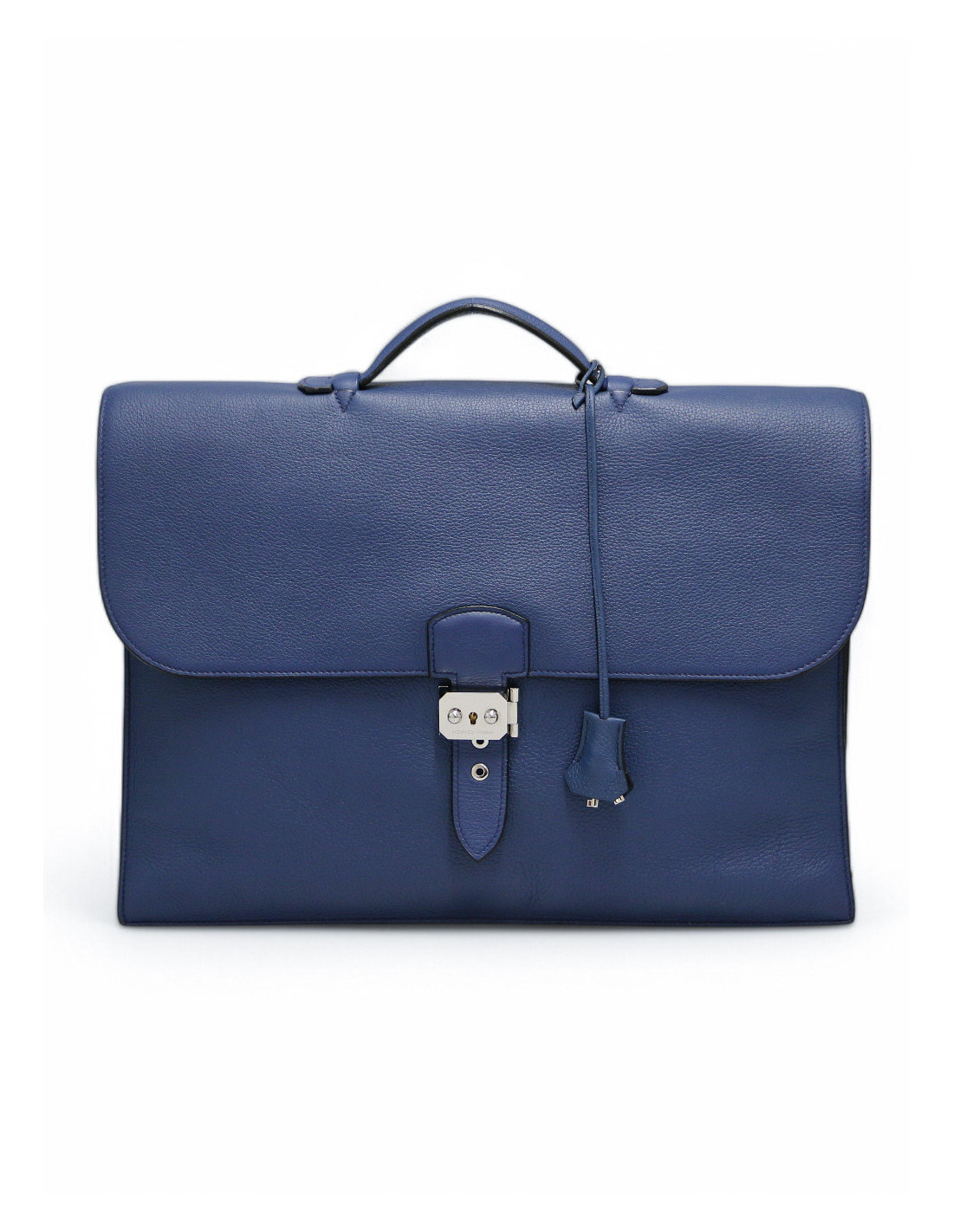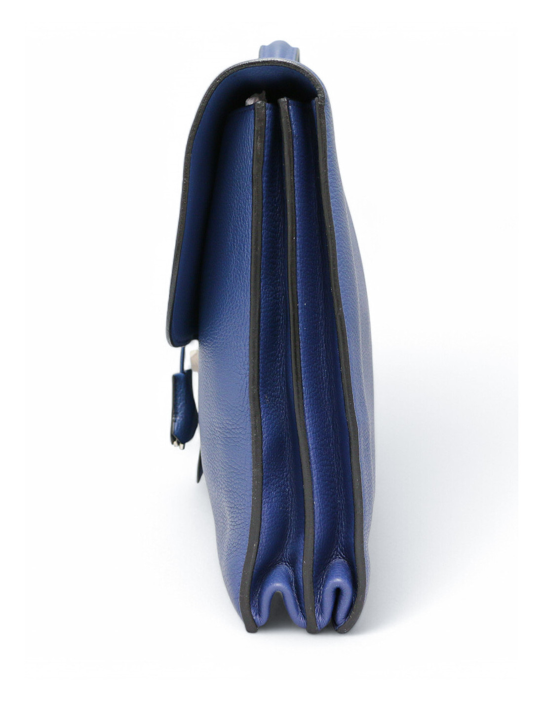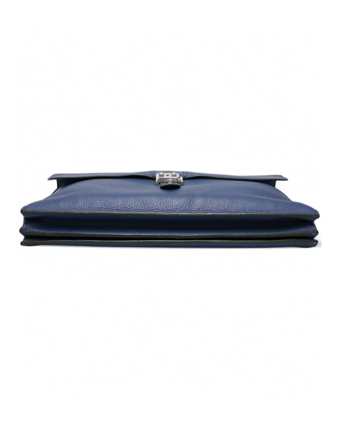 Sac à dépêches HERMES Taurillon Clémence bleu