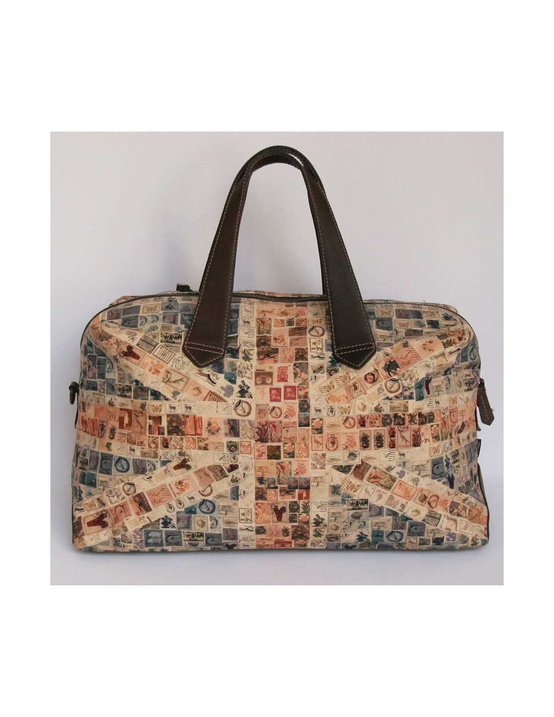 Sac pour le week-end PAUL SMITH, imprimé "timbre postale" dans les tons pastel.