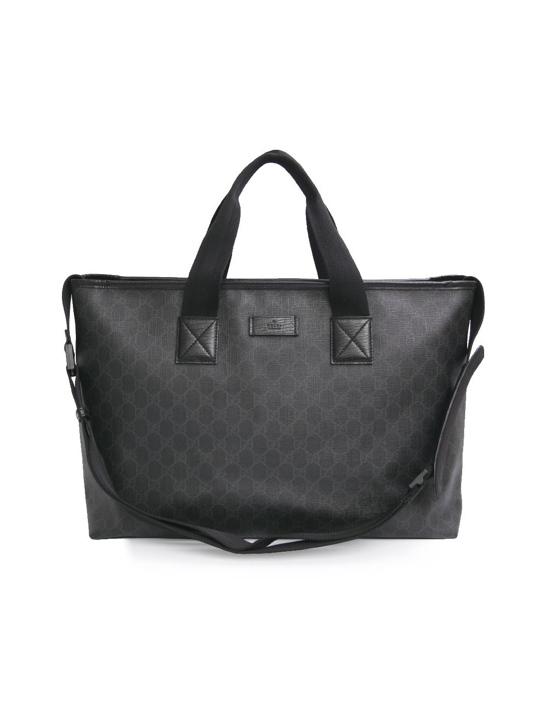 Sac cabas Gucci en toile enduite monogram grise. Il peut se porter de deux façons: à la main à l'aide de deux poignées et à l'épaule avec sa bandoulière réglable. Fermeture zippée. L'intérieur est en toile noire avec une grande poche zippée ainsi qu'une autre pour smartphone. En très bon état.