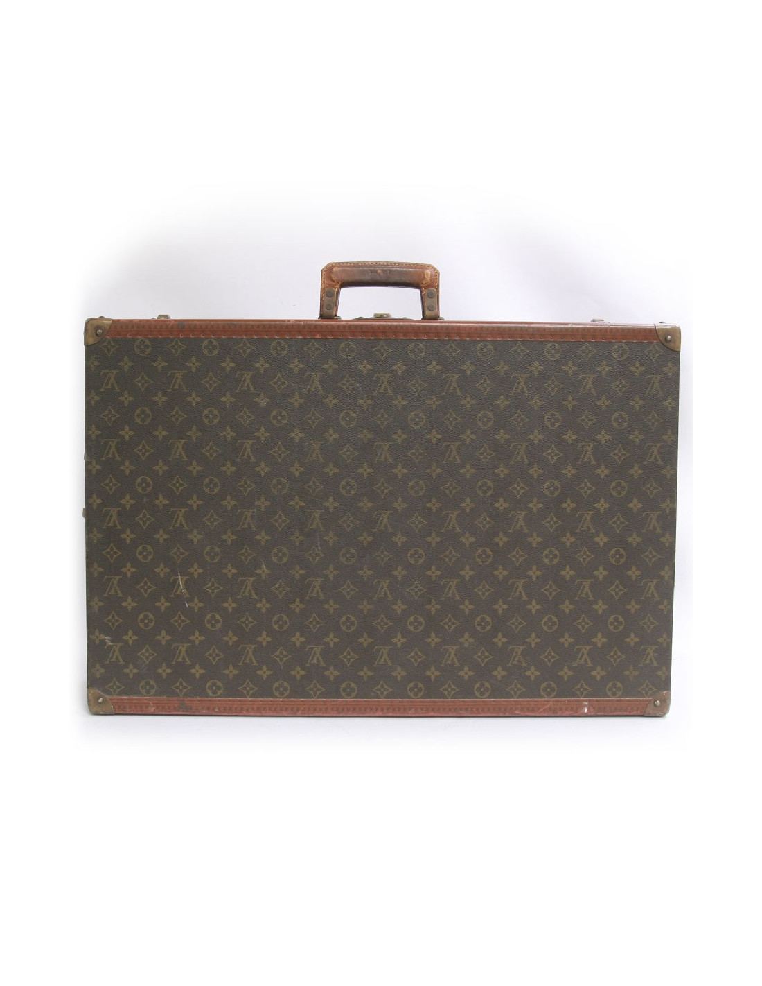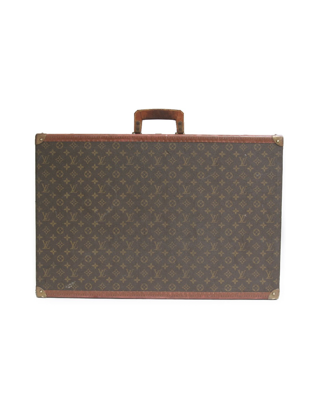 Superbe valise "Alzer" rigide de la Maison Louis Vuitton en toile monogram enduite et cuir naturel. Fermeture par serrure en laiton doré. Doublure intérieure en toile beige. Signature "Louis Vuitton Made in France". Etat vintage. Les bordures ainsi que les poignées sont abimées par l'usure d'usage. Voir photos.