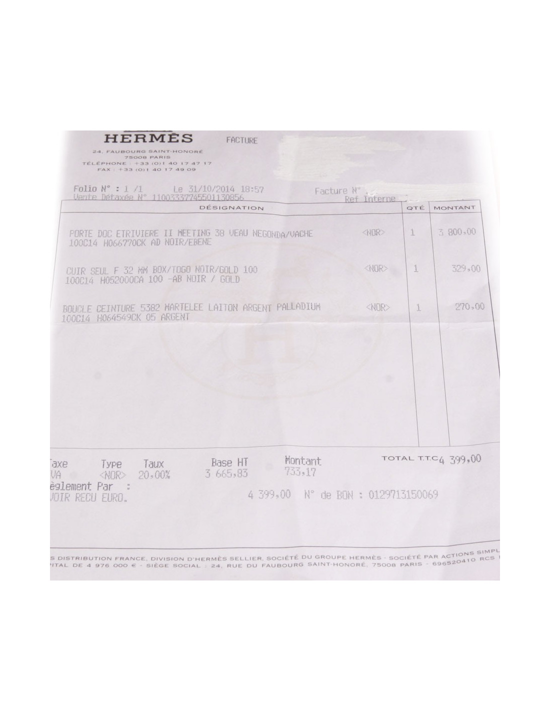 Il sera livré avec sa facture et dans sa boite d'origine Hermès