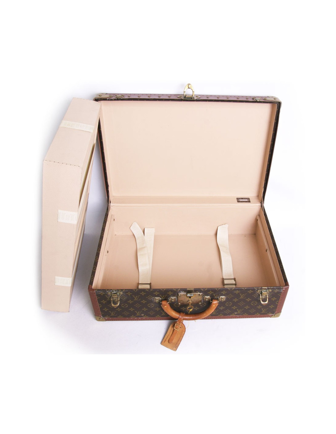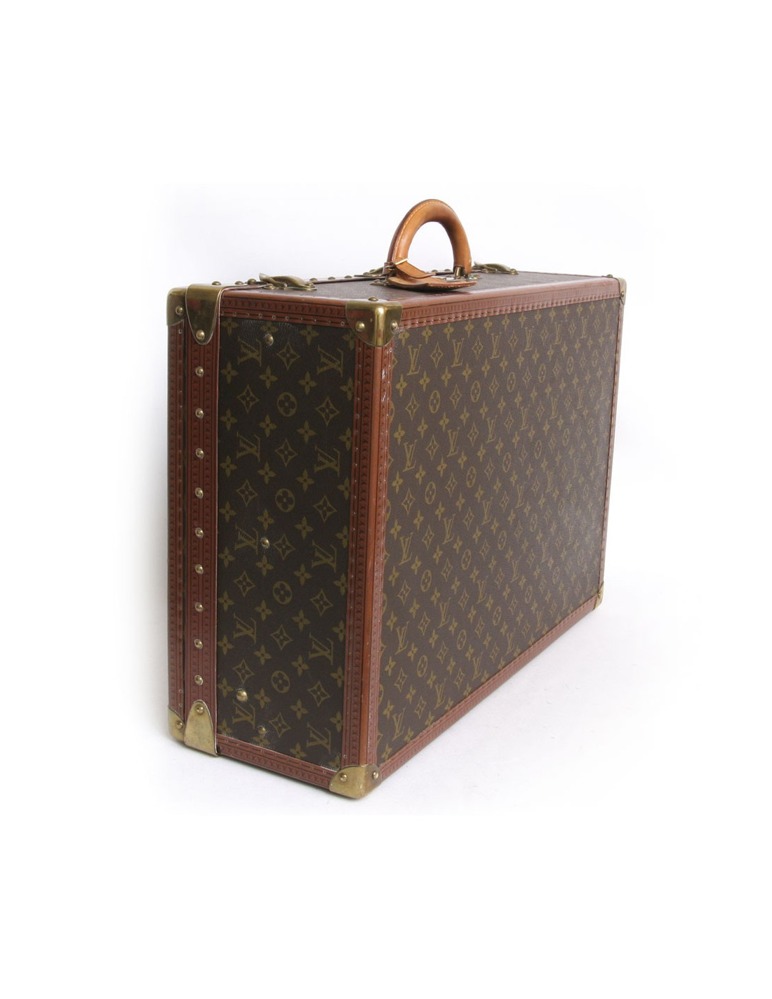 La célèbre valise "Alzer" de la Maison Louis Vuitton en toile monogram, fait partie des emblèmes de la Marque. Son volume équilibré et sa robustesse inégalables continuent de séduire de nombreux amateurs à travers le monde. Les poignées sont en cuir naturel. L'intérieur est en toile avec des sangles de maintien. La cloison est amovible et housse de protection. Serrure "S" Louis Vuitton renforcée de 2 loquets complémentaires. Les bordures sont en cuir renforcées de rivets et de coins en laiton. Les pièces métalliques sont en laiton doré. Hologramme: 9300... En très bon état. Quelques fines rayures d'usage sur un des côtés. Voir photos.