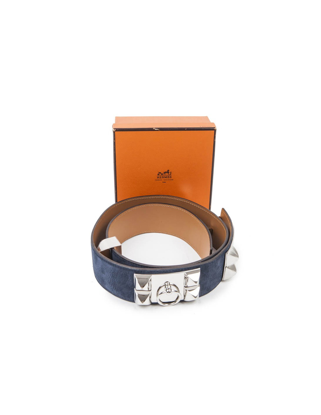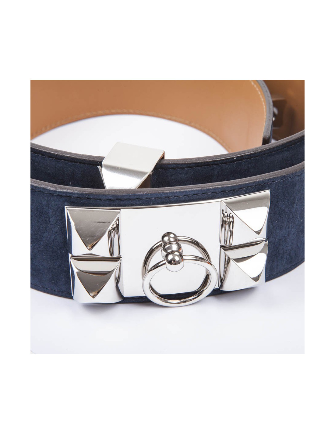 Ceinture CDC HERMES T90 en veau velours bleu