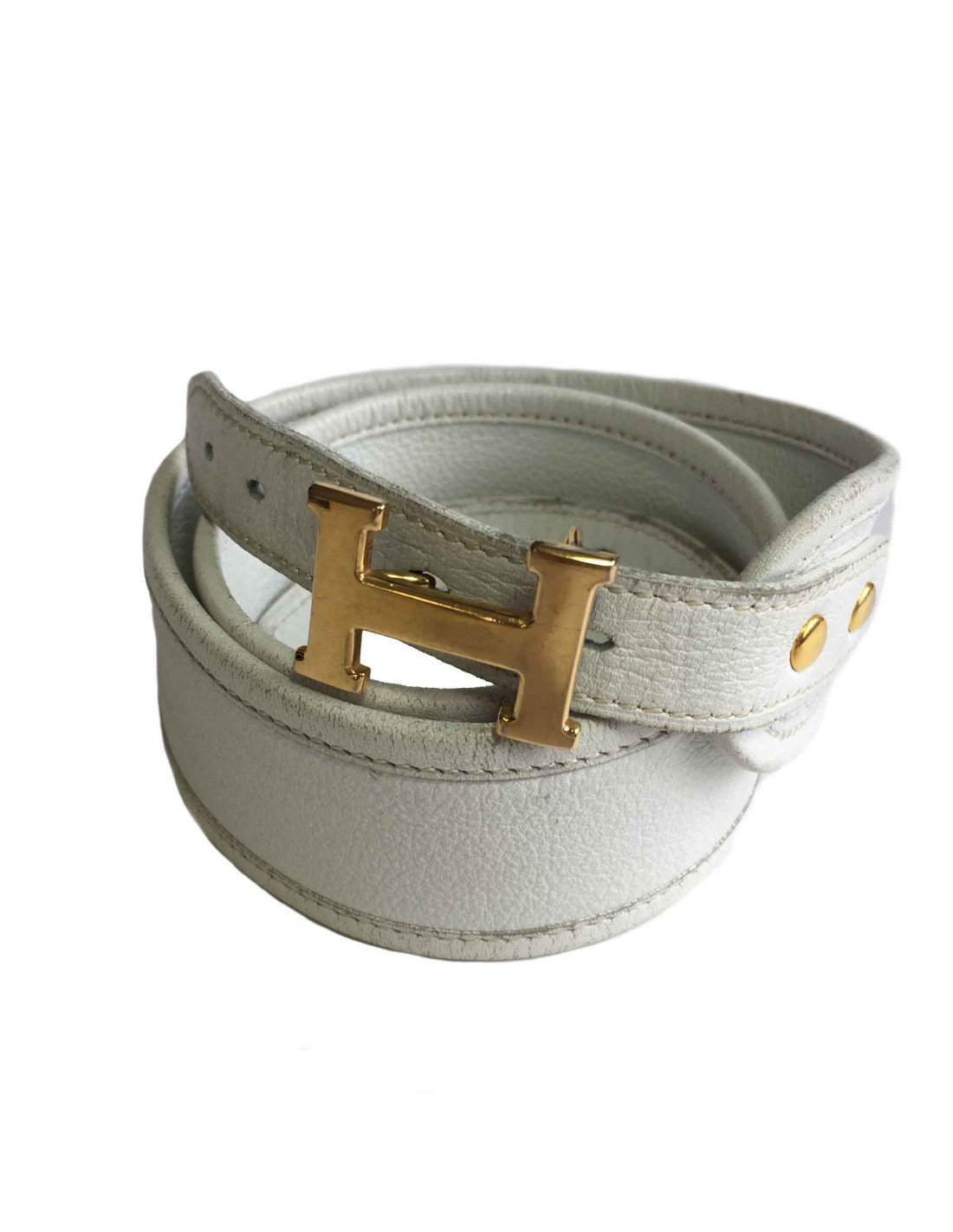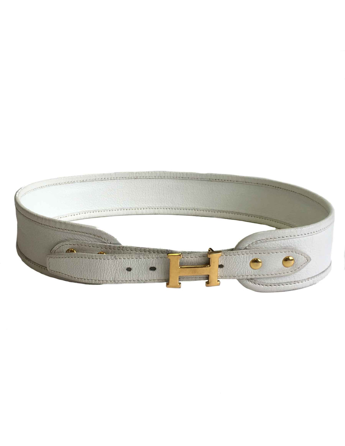 Ceinture HERMES en cuir blanc et boucle H vintage