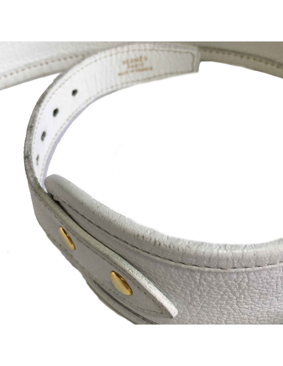 Vintage, ceinture Hermès en cuir blanc et boucle H en métal doré. La boucle H est amovible.