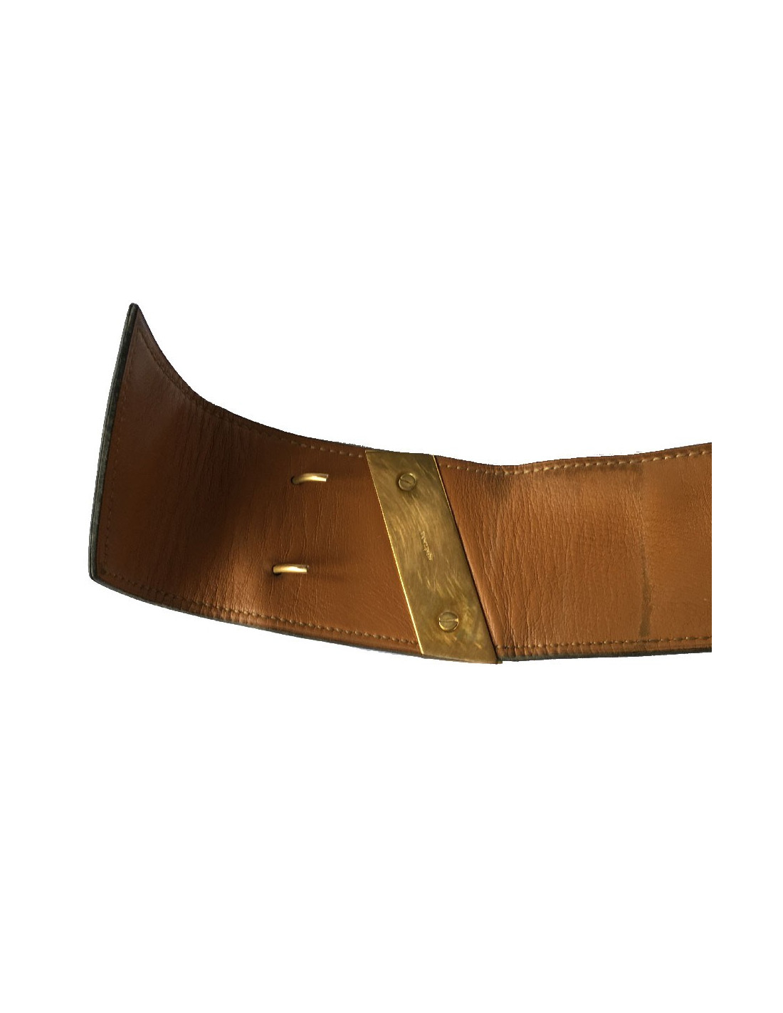 Ceinture HERMES T80-85 vintage en cuir marine, intérieur cuir gold