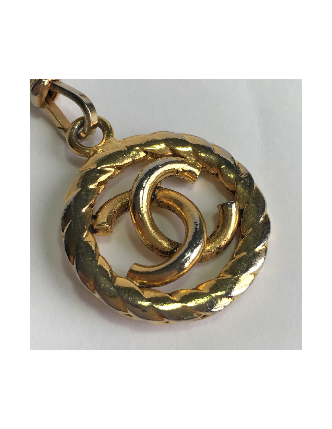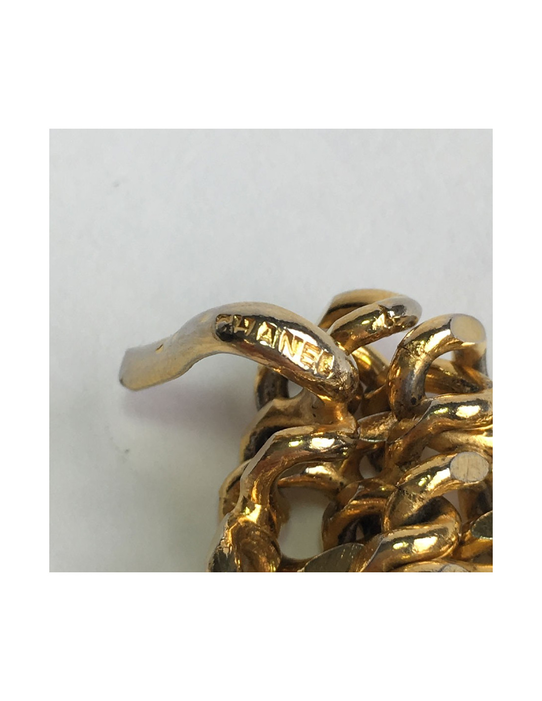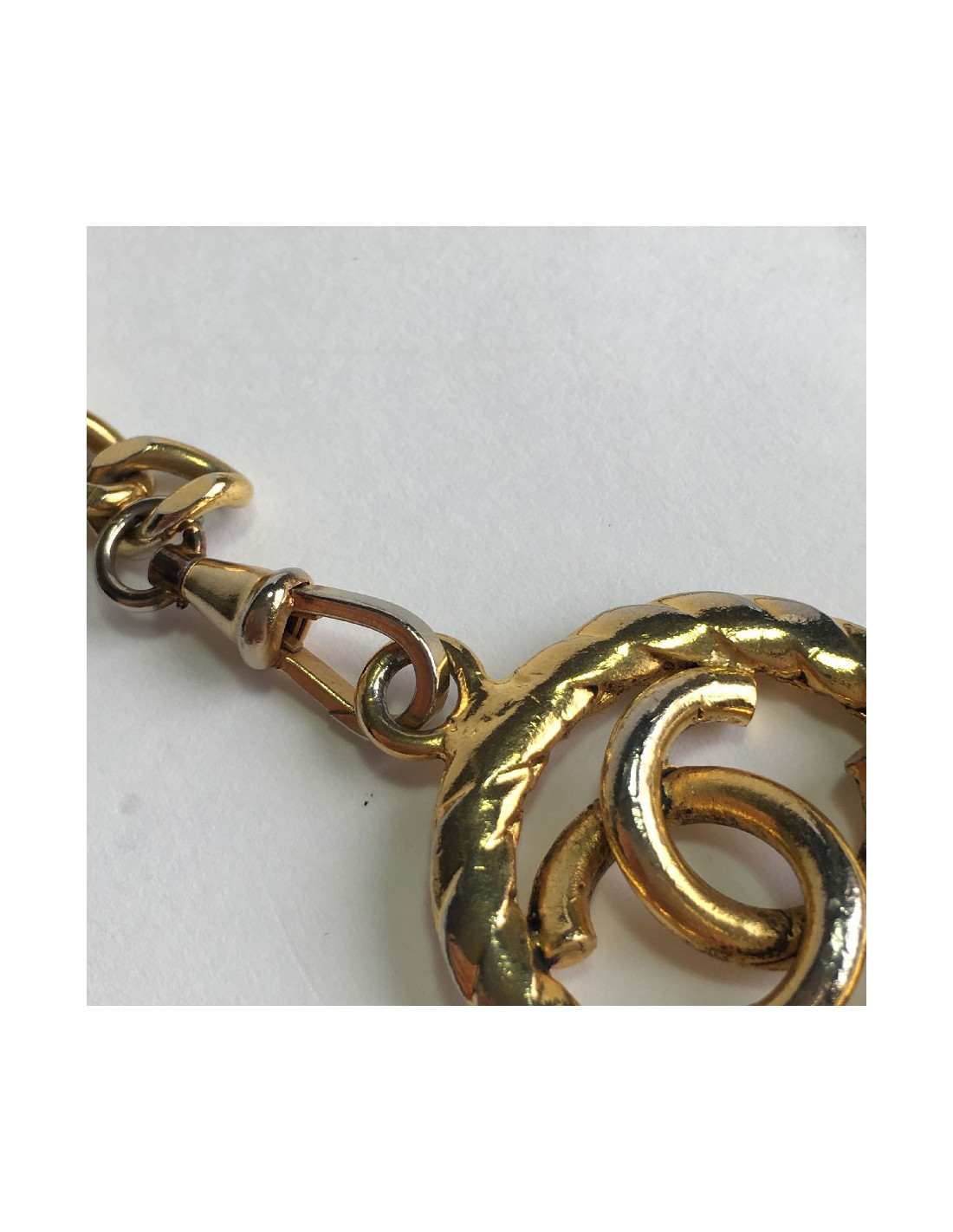 Ceinture Chanel en maille dorée. Elle se termine par un CC dans un rond.