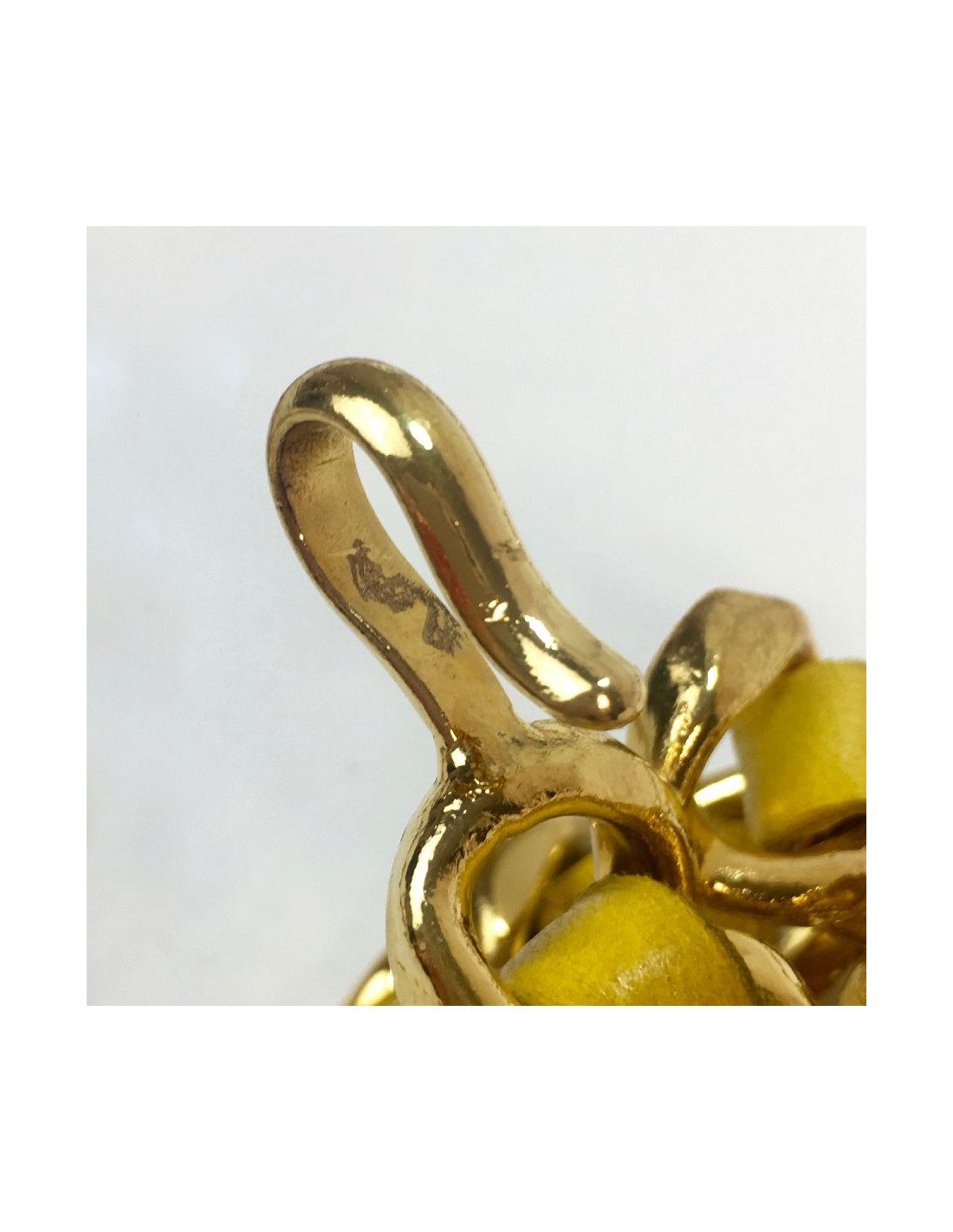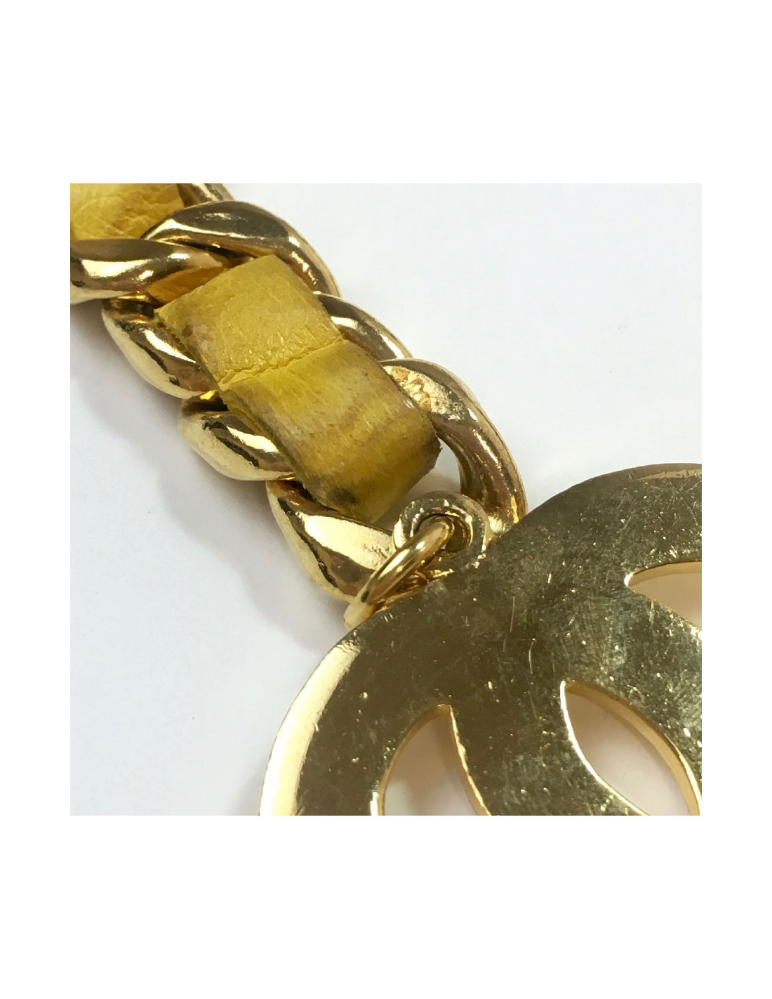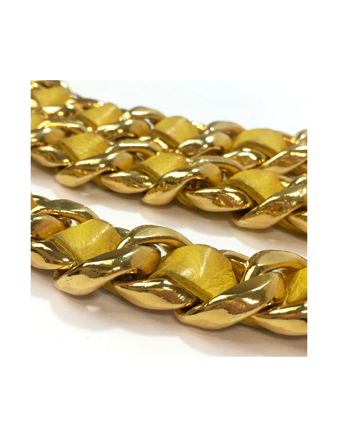Ceinture CHANEL Vintage chaine entrelacée de cuir jaune