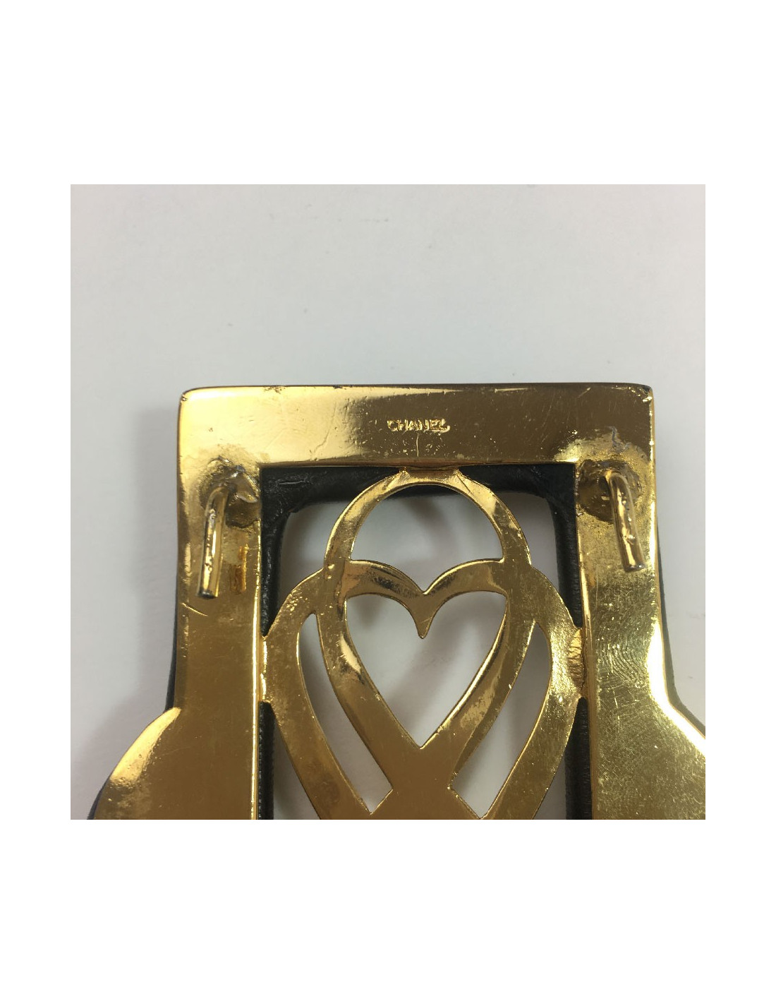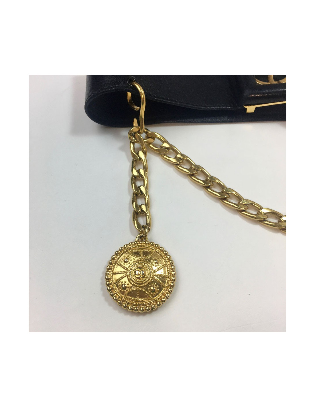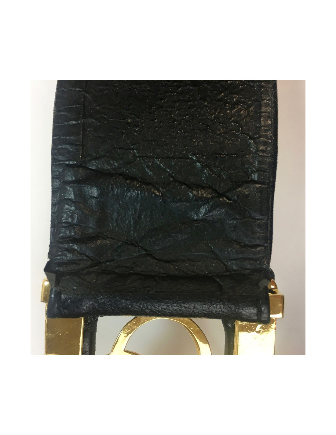 Ceinture CHANEL T65 Vintage noire et métal doré