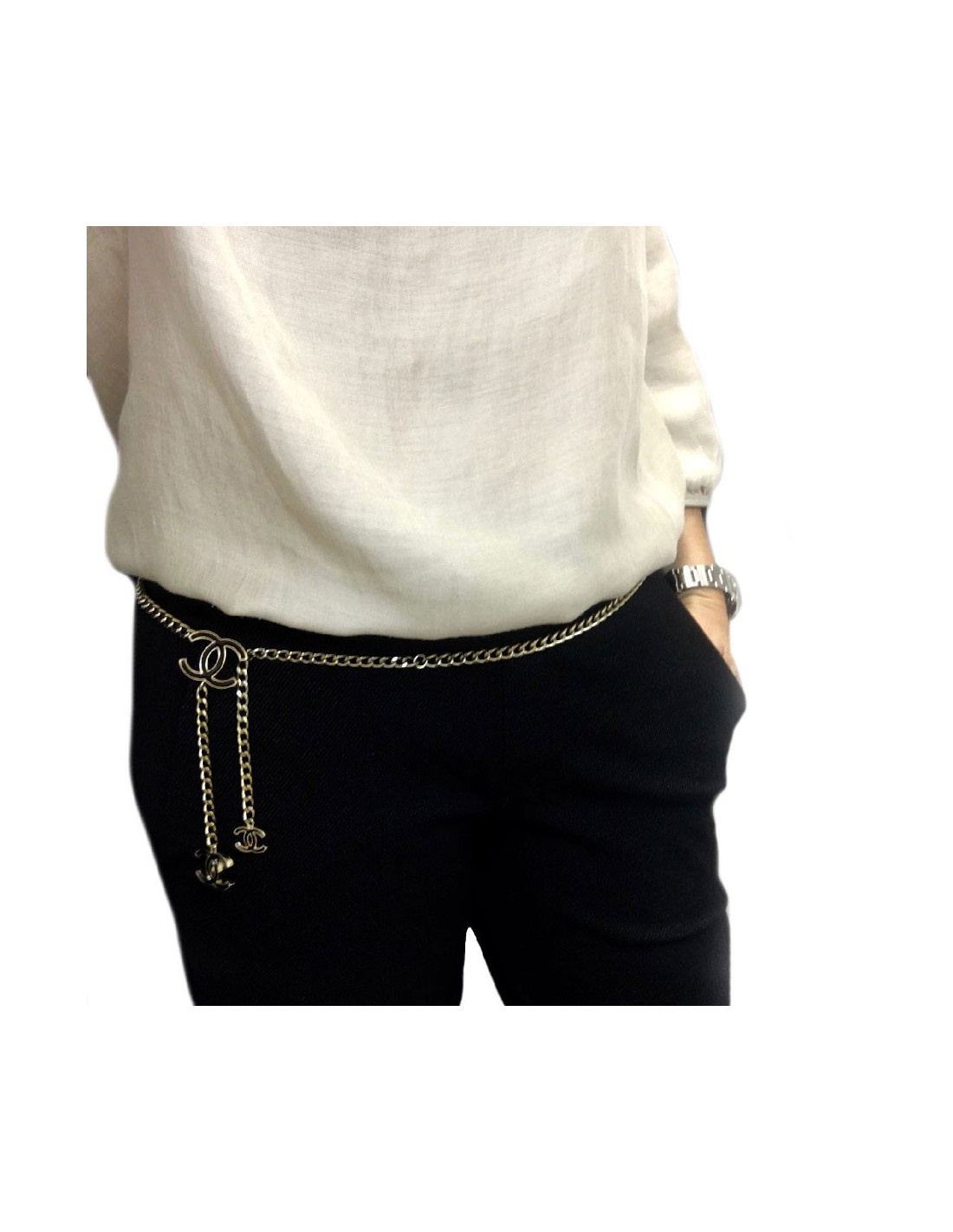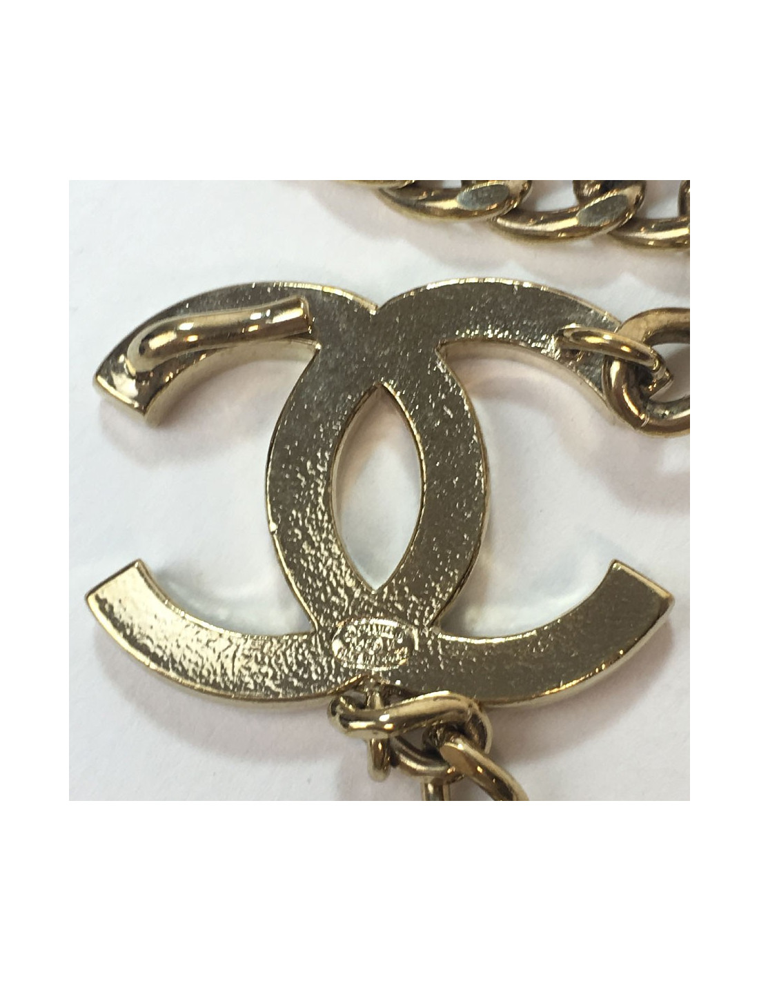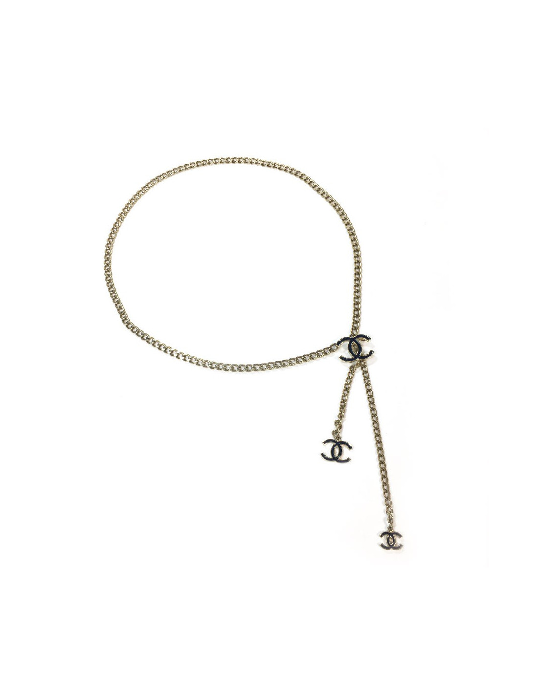 Ceinture Chanel chaine en métal doré, 3 CC en résine noire et métal doré.