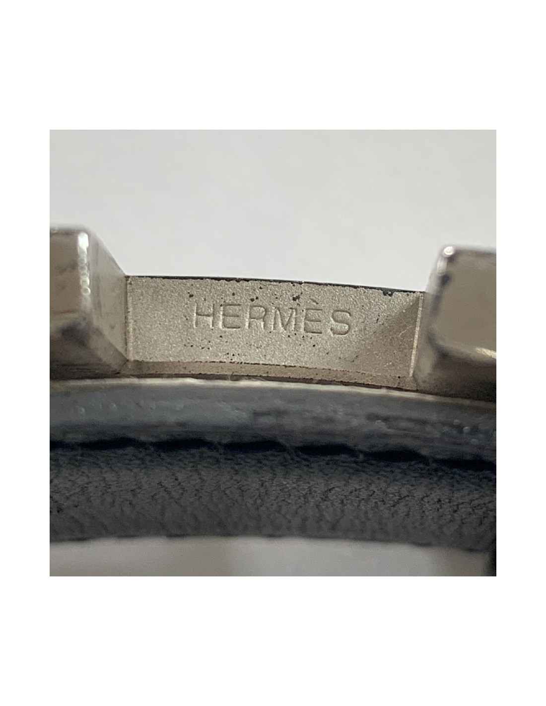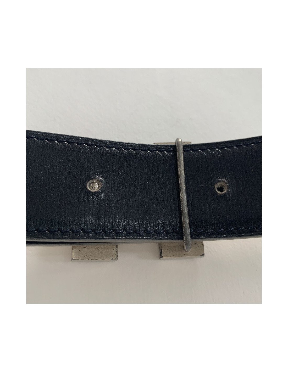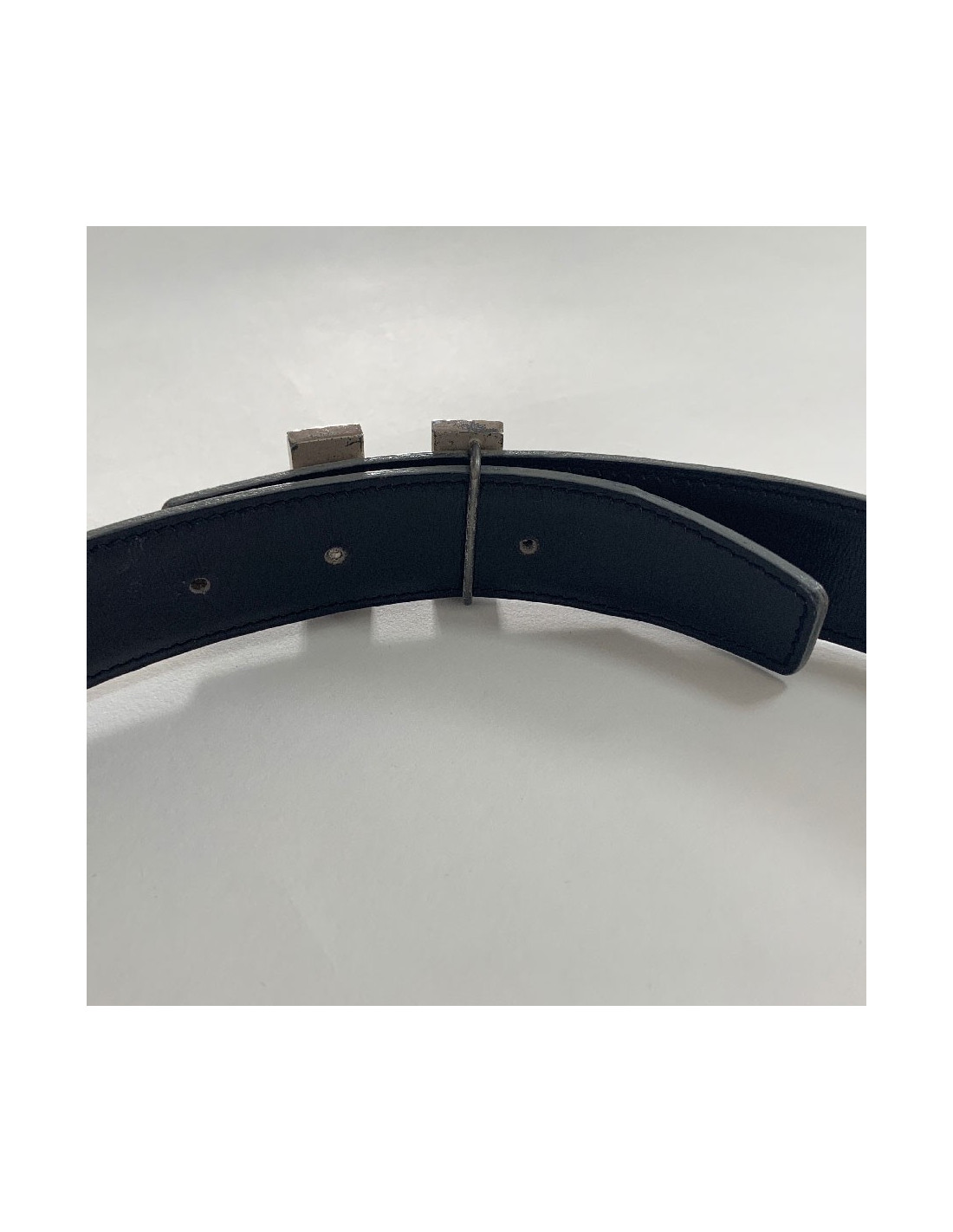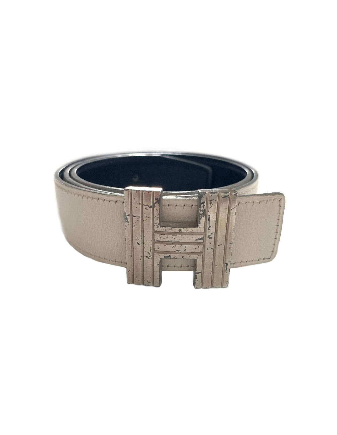 La boucle H en métal argenté présente des marques d'usure (voir photo).