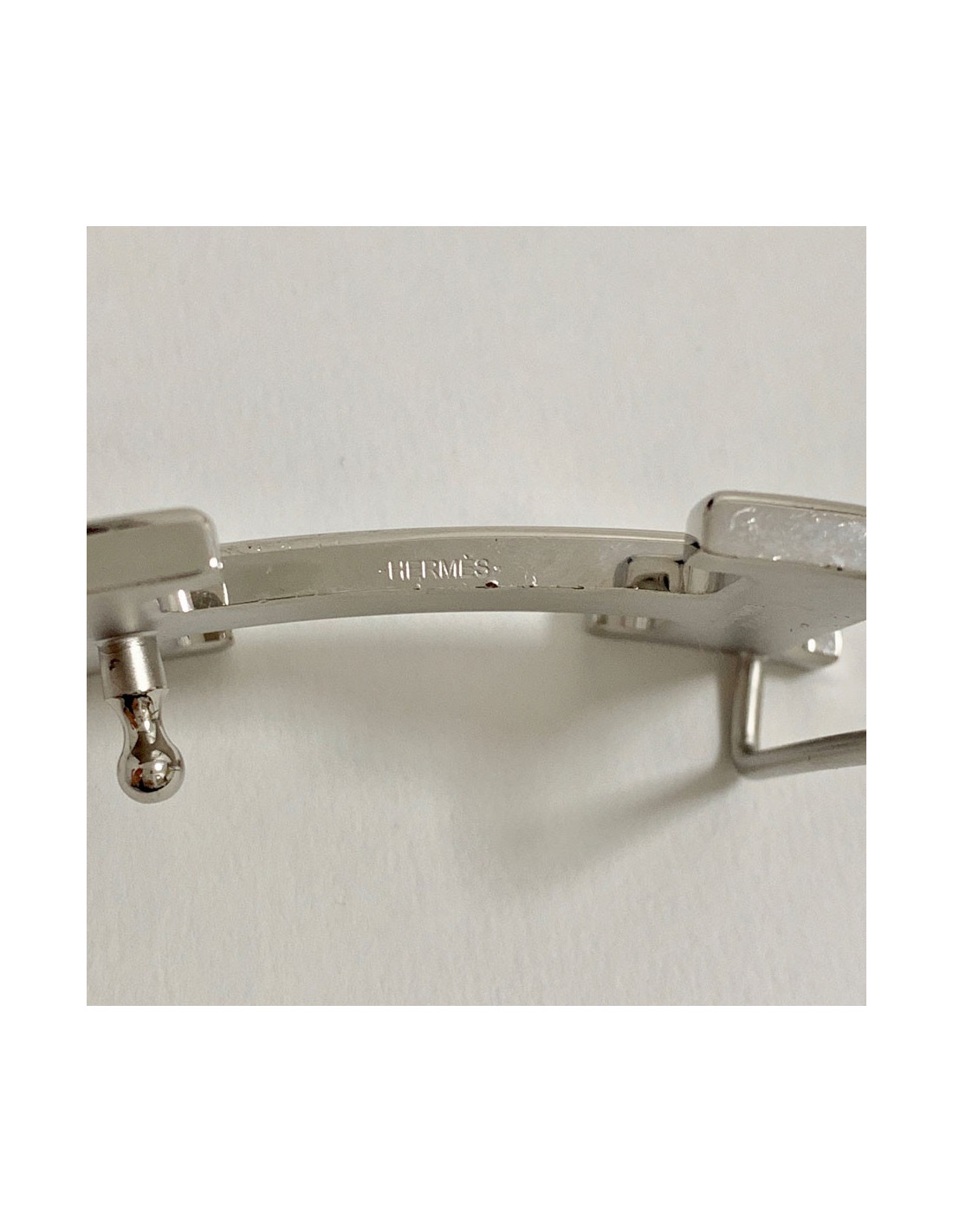 Boucle H HERMES en métal argenté martelé
