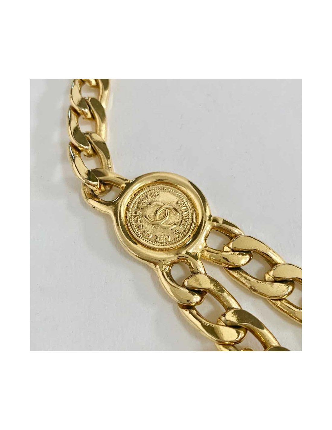 Sur la chaîne principale vous retrouvez des médaillons portant l'inscription CHANEL 31 Rue Cambon PARIS et un CC au centre.