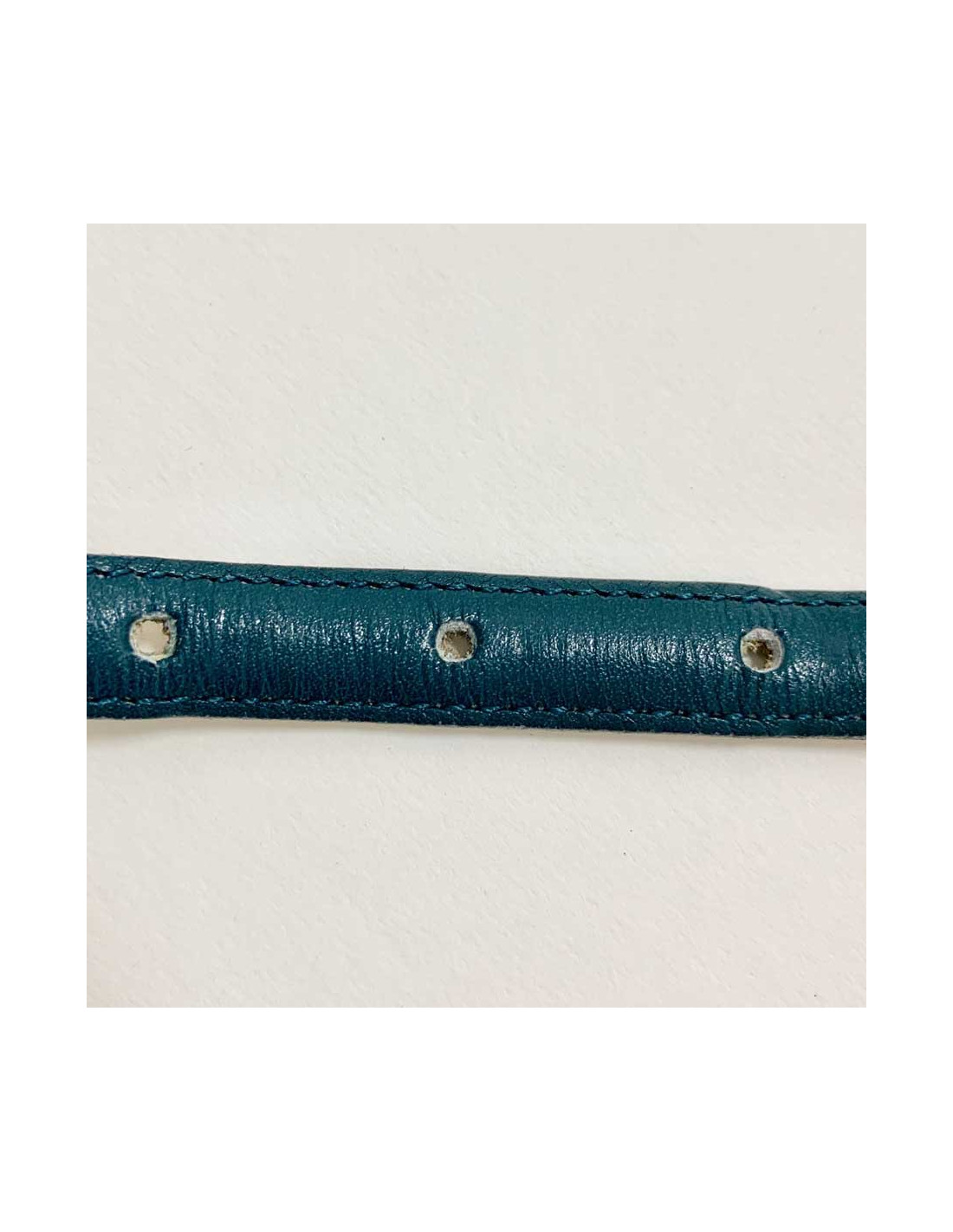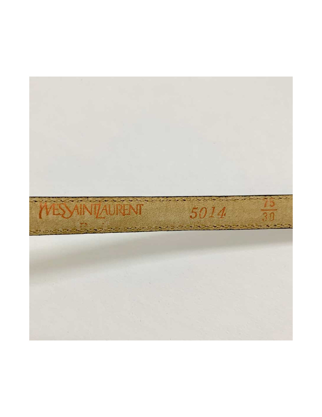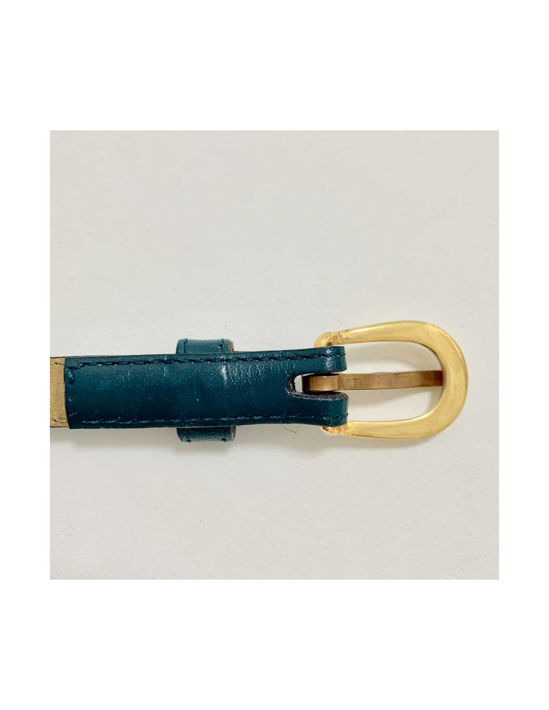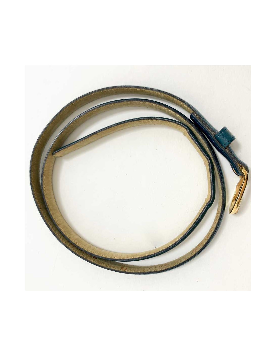 Superbe accessoire de la Maison Yves Saint Laurent. Ceinture fine en cuir bleu canard et cuir beige à l'intérieur. La bijouterie est en métal doré. Les initiales YSL sont en lettres dorées sur le passant.