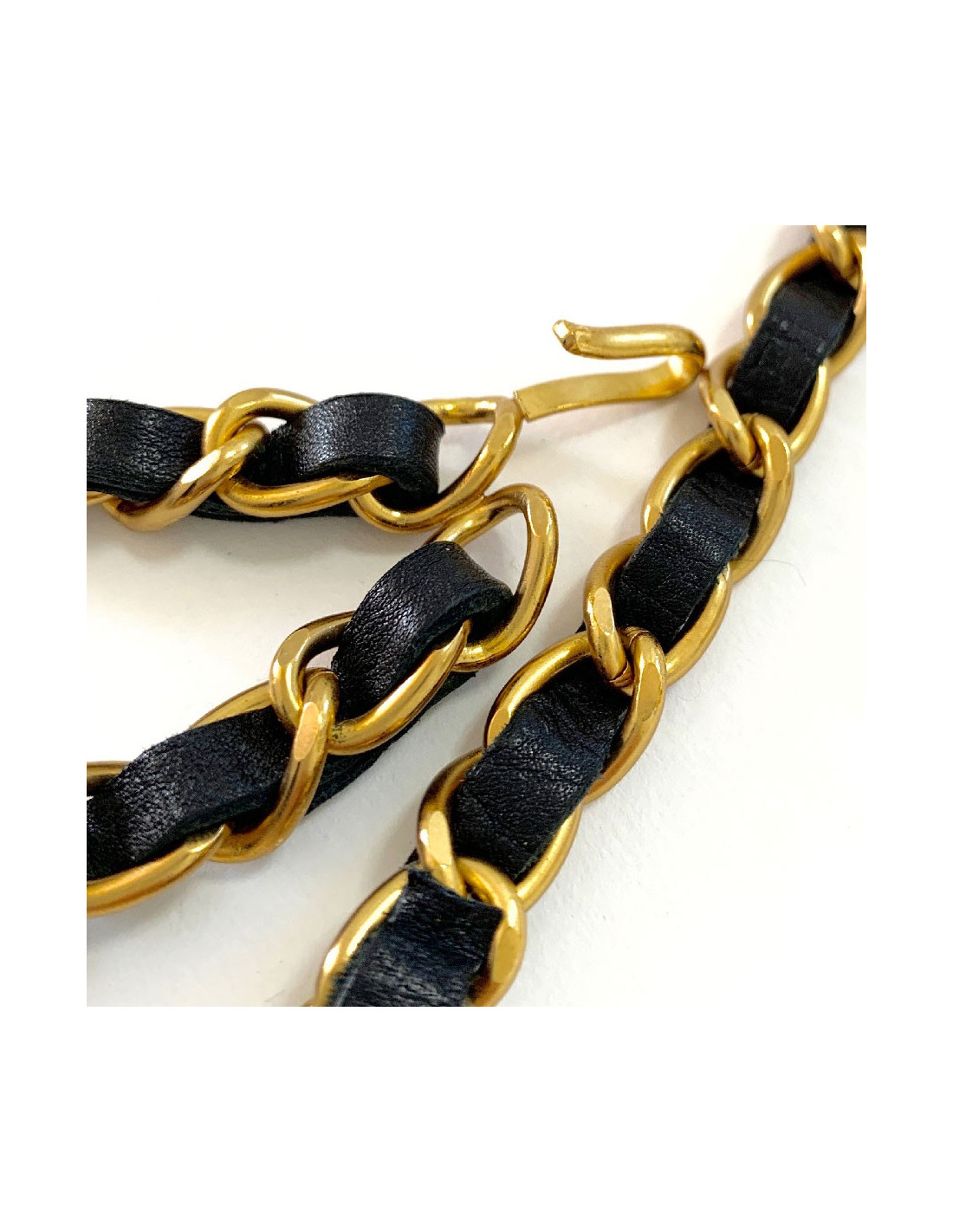 Ceinture CHANEL Aigle vintage en métal doré et cuir noir