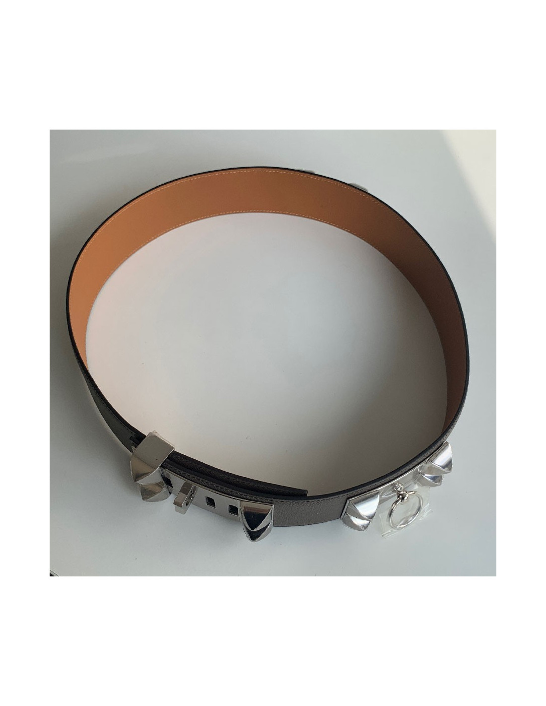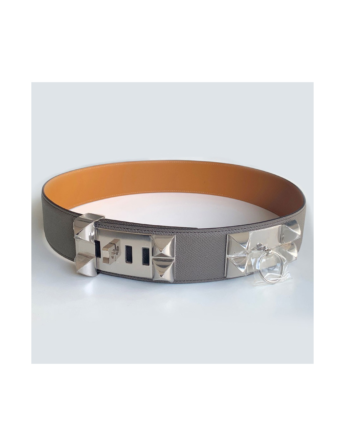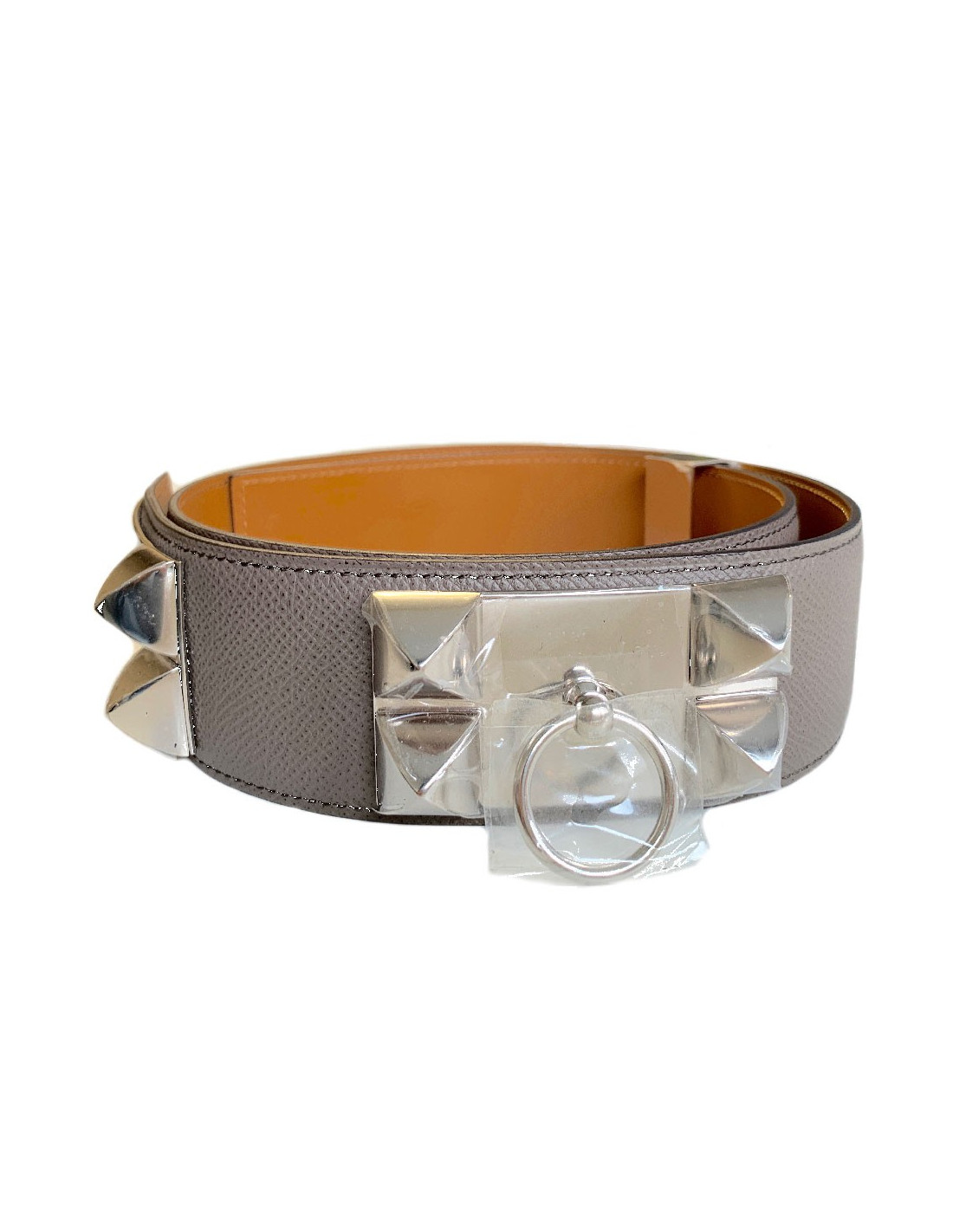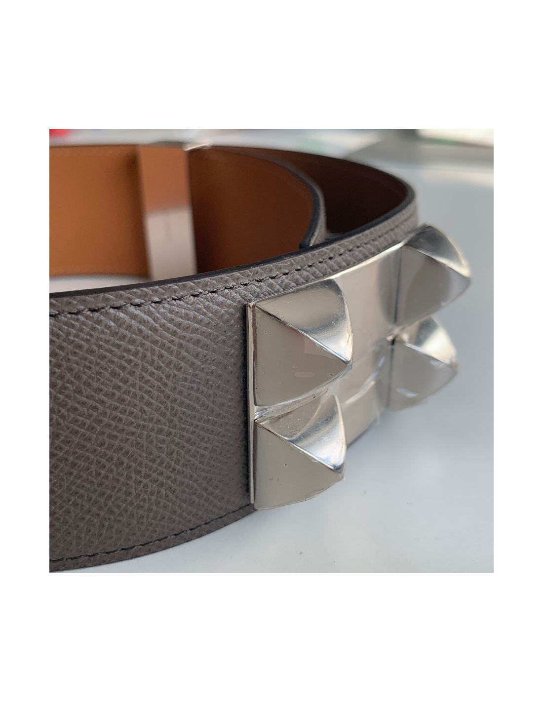 Ceinture HERMES Collier de Chien étain en cuir epsom - Description