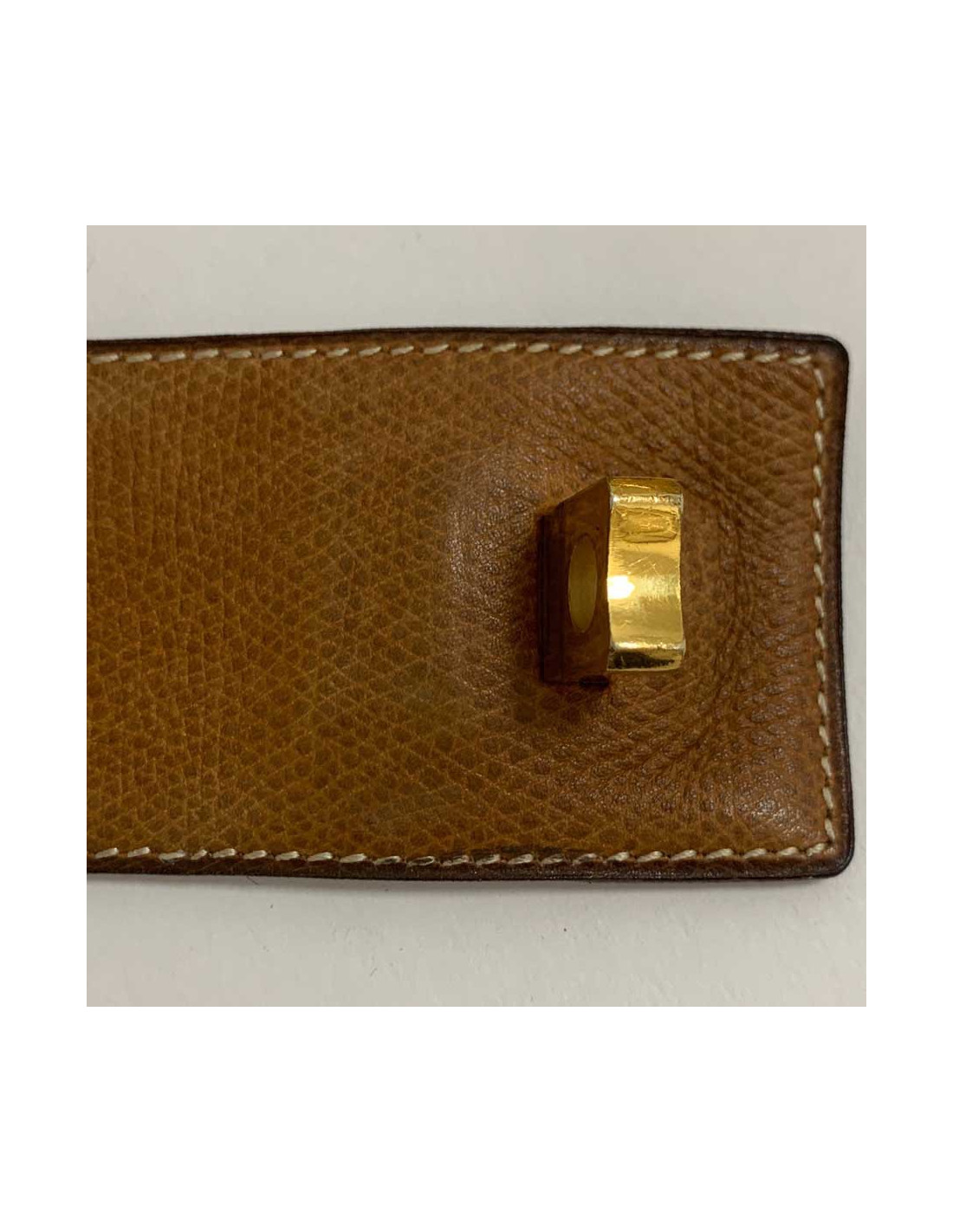 Elle est en bon état. Le cuir est patiné et perd légèrement de sa couleur sur les extrémités. Traces d'usure sur le cuir gold. La bijouterie présente des micro rayures d'usage également.