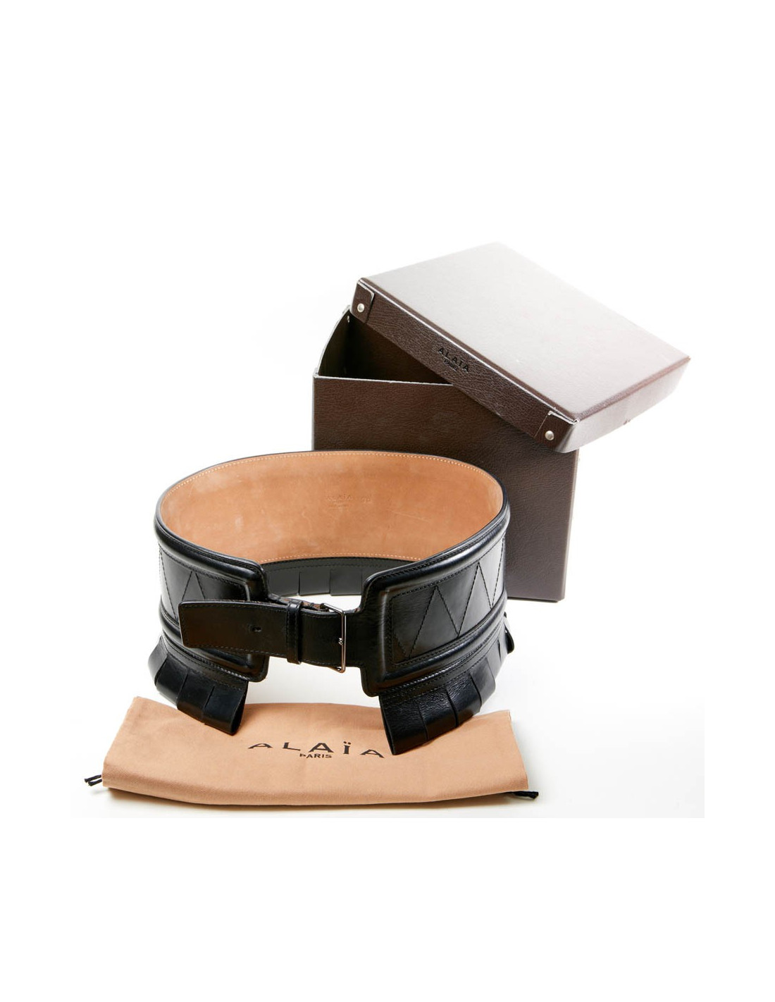 Ceinture ALAIA large cuir box noir t 70