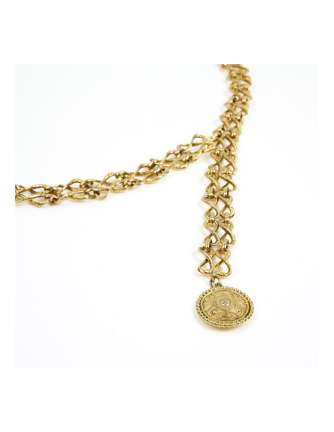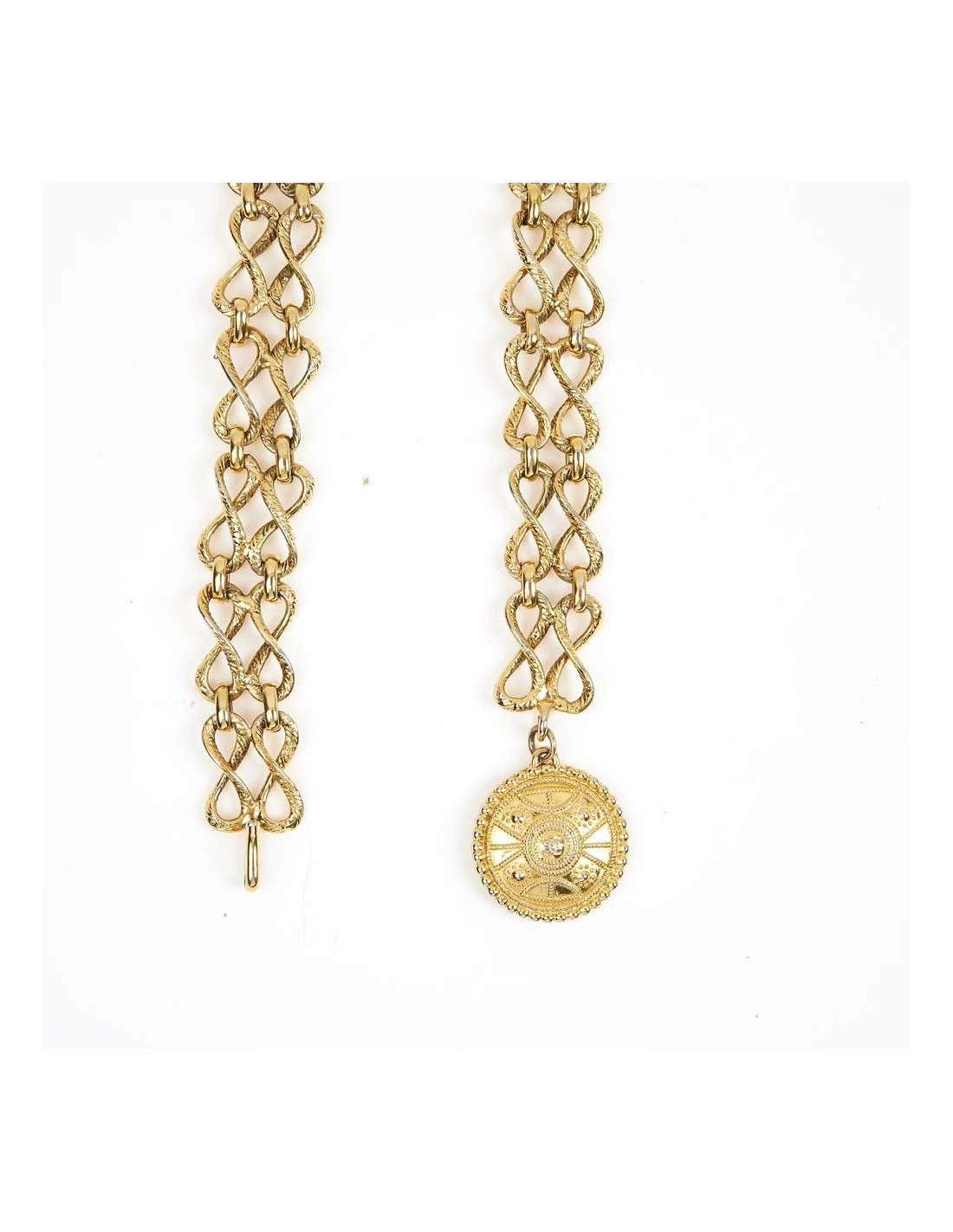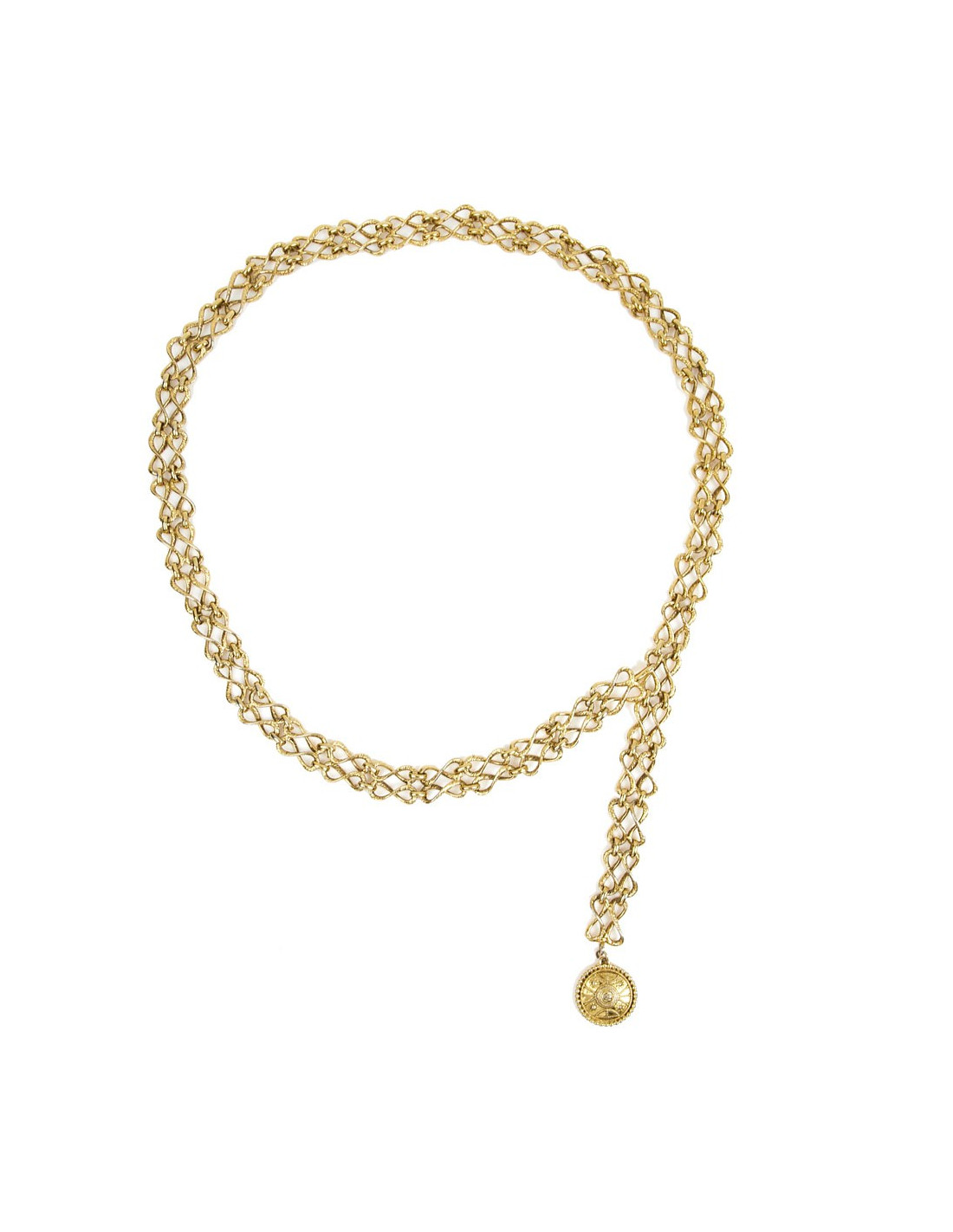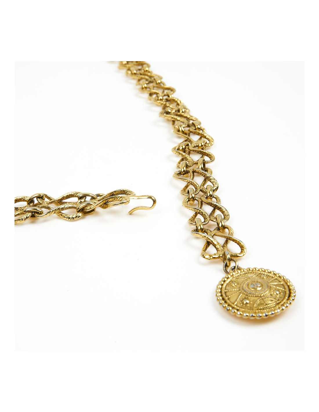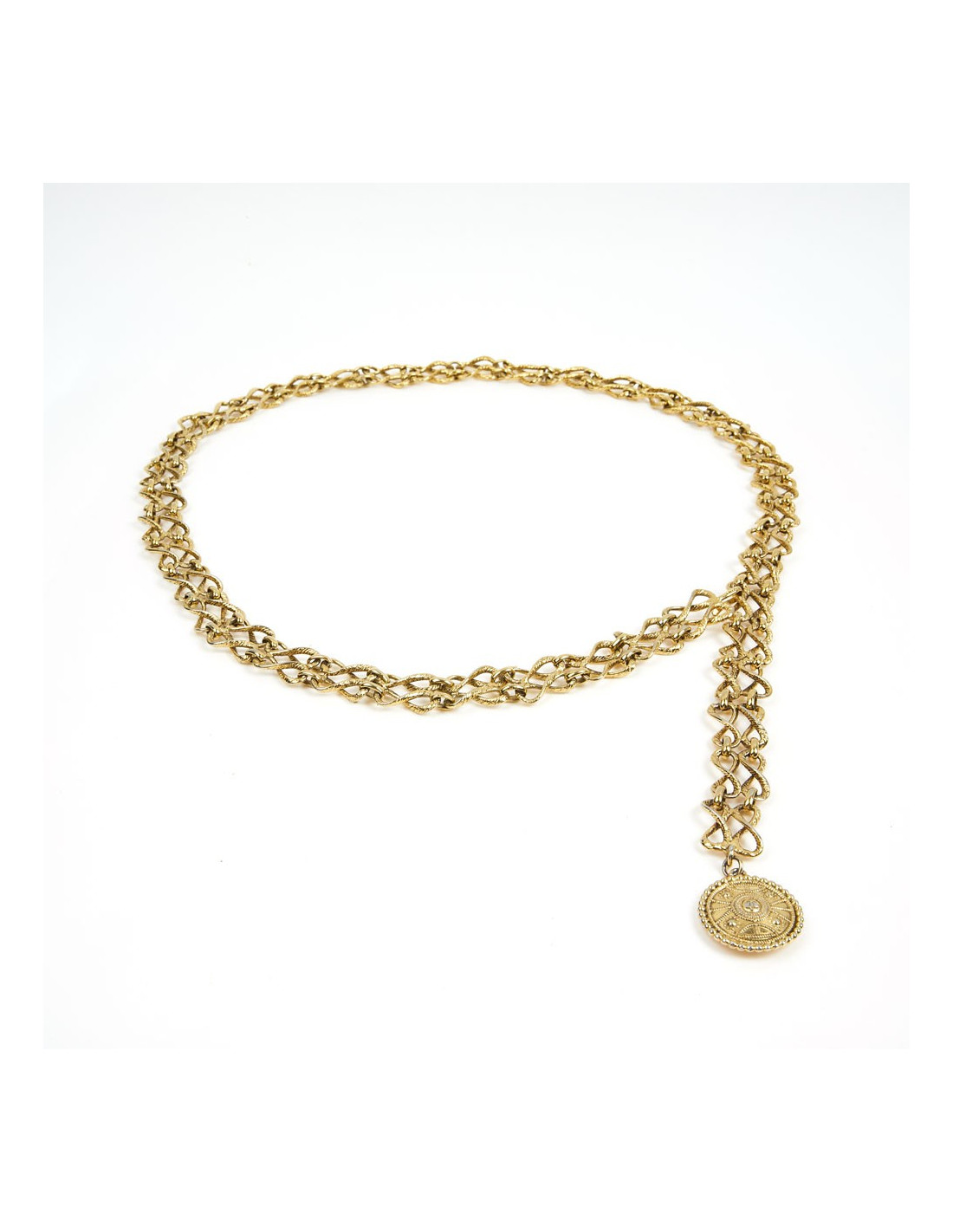 A porter sur un jean’s ou une robe l’effet sera immédiat : magique. La ceinture est guillochée en métal doré. Elle se termine par un médaillon bombé et au centre l’incontournable « cc’.