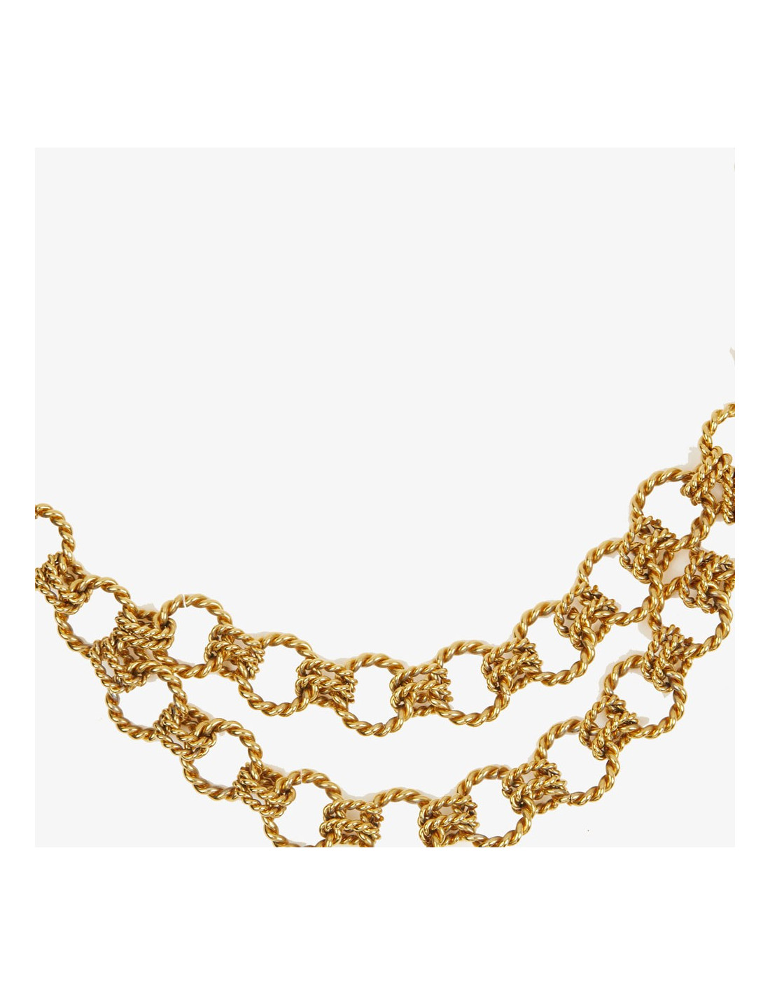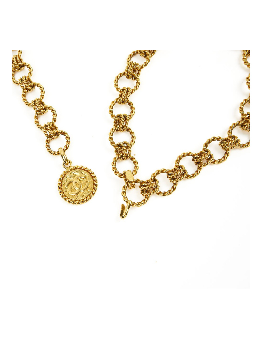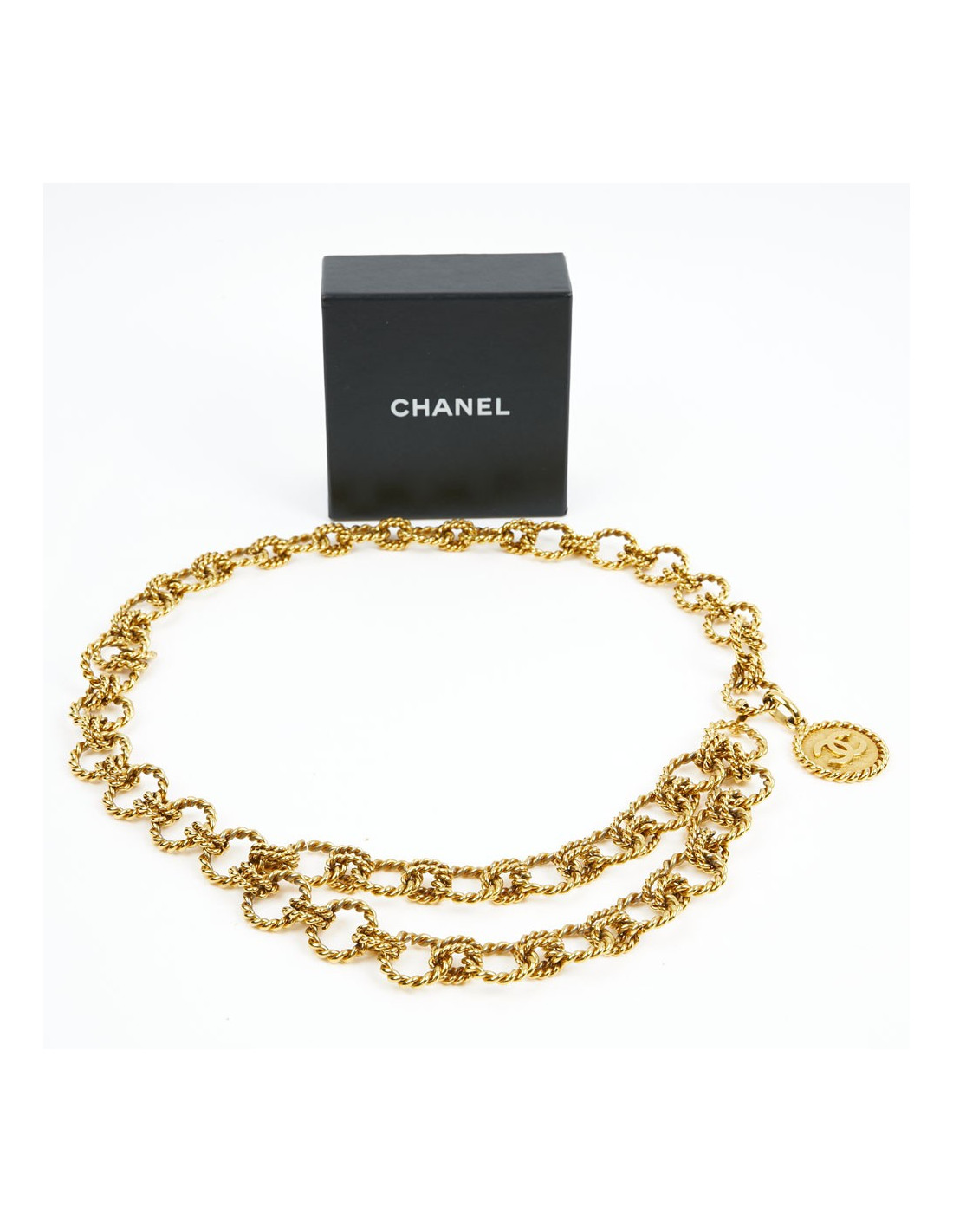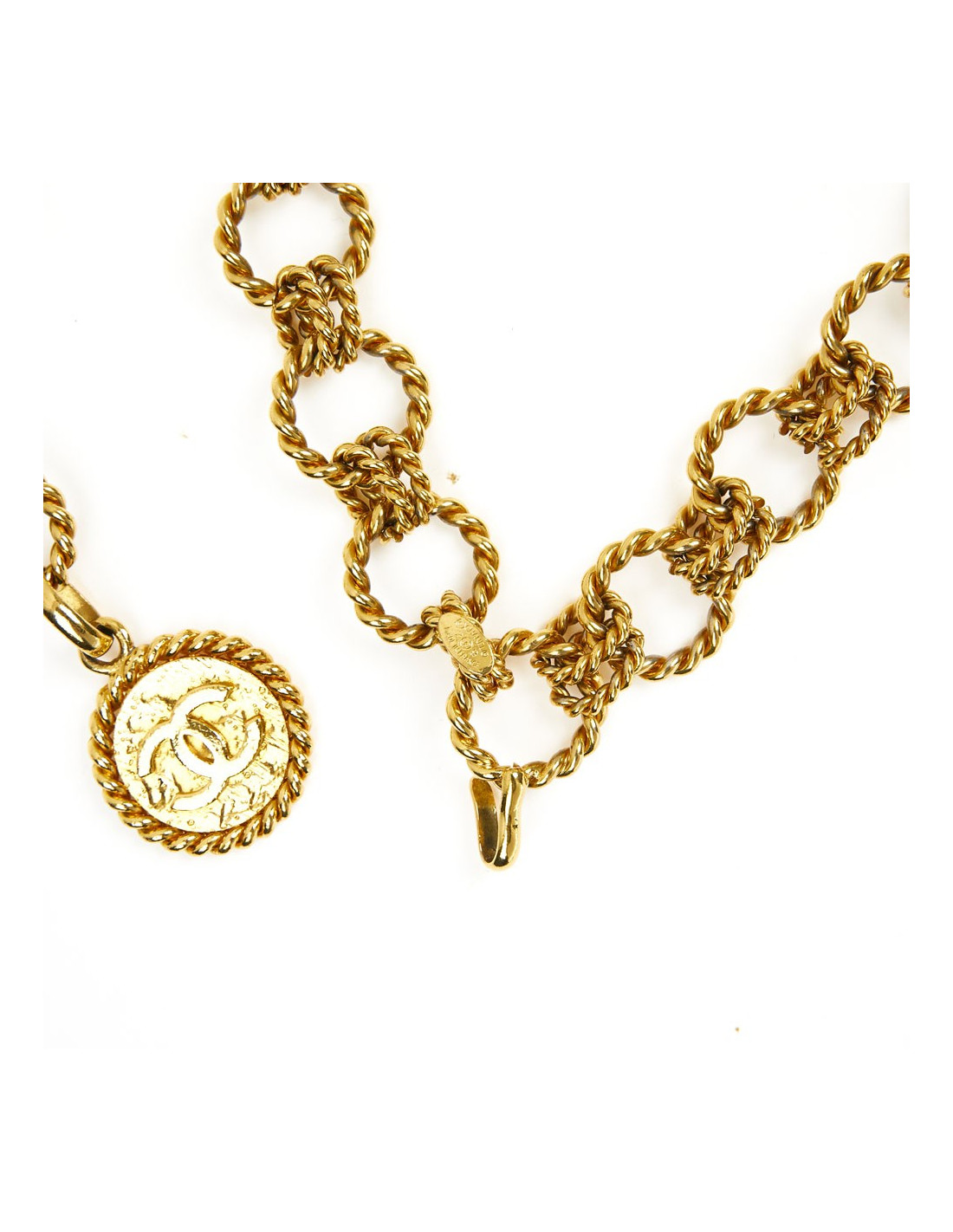 Imposante ceinture vintage de la Maison Chanel, composée d’anneaux tressés dorés. Elle est en très bon état.