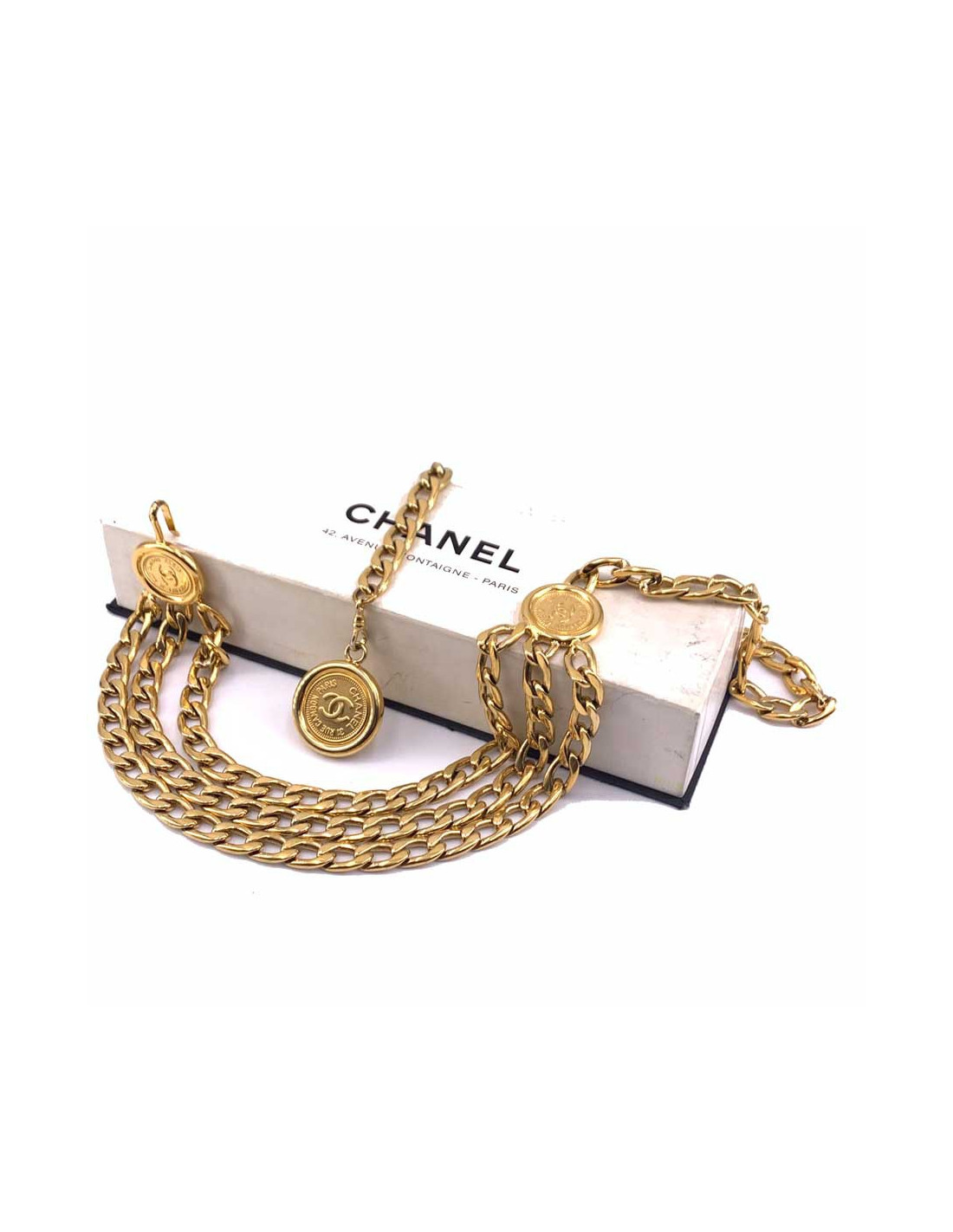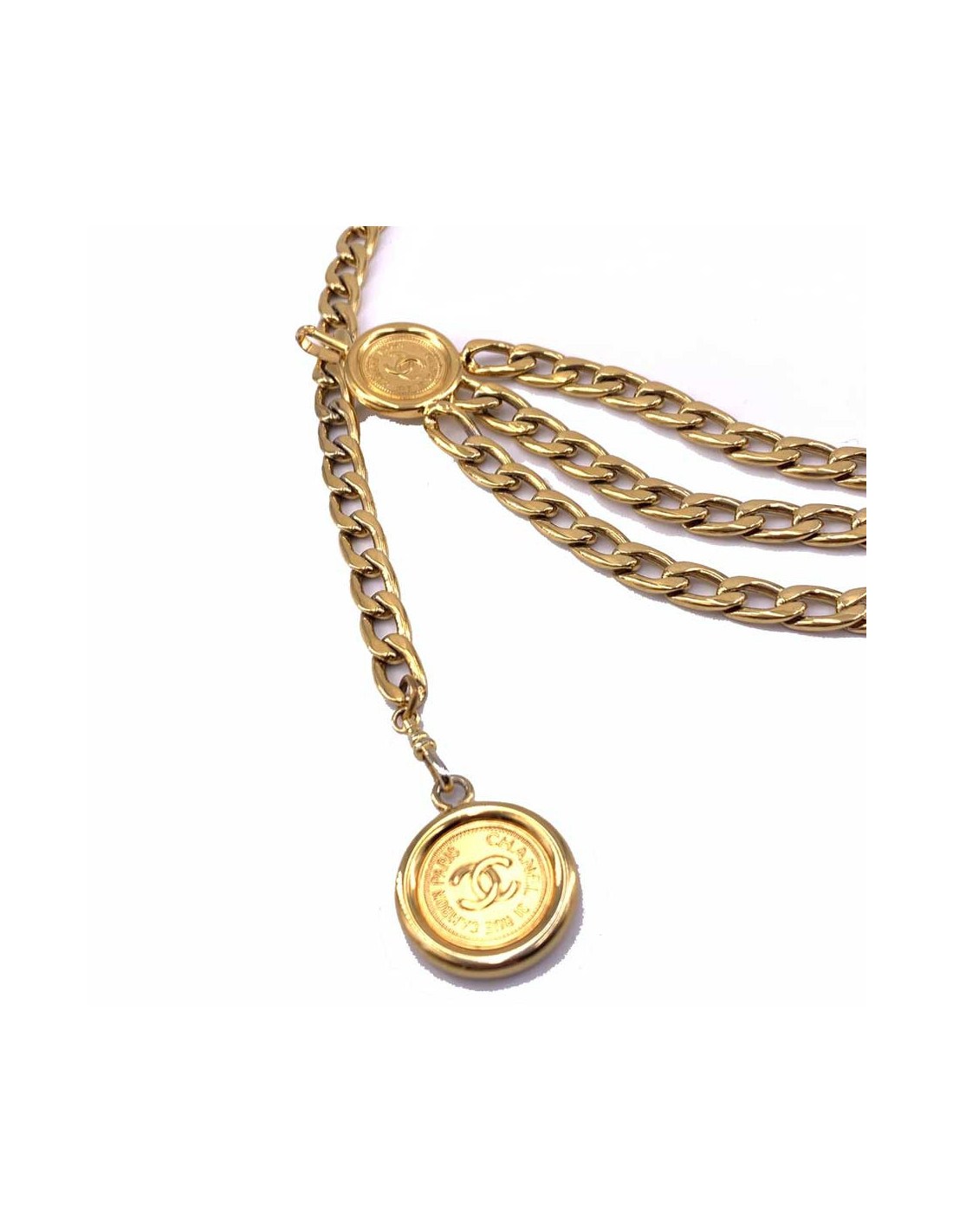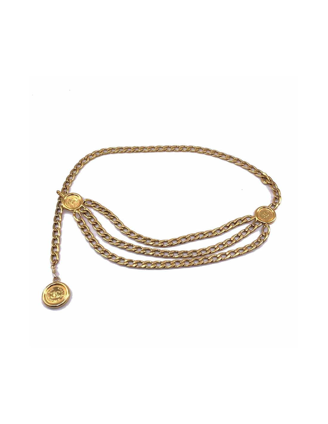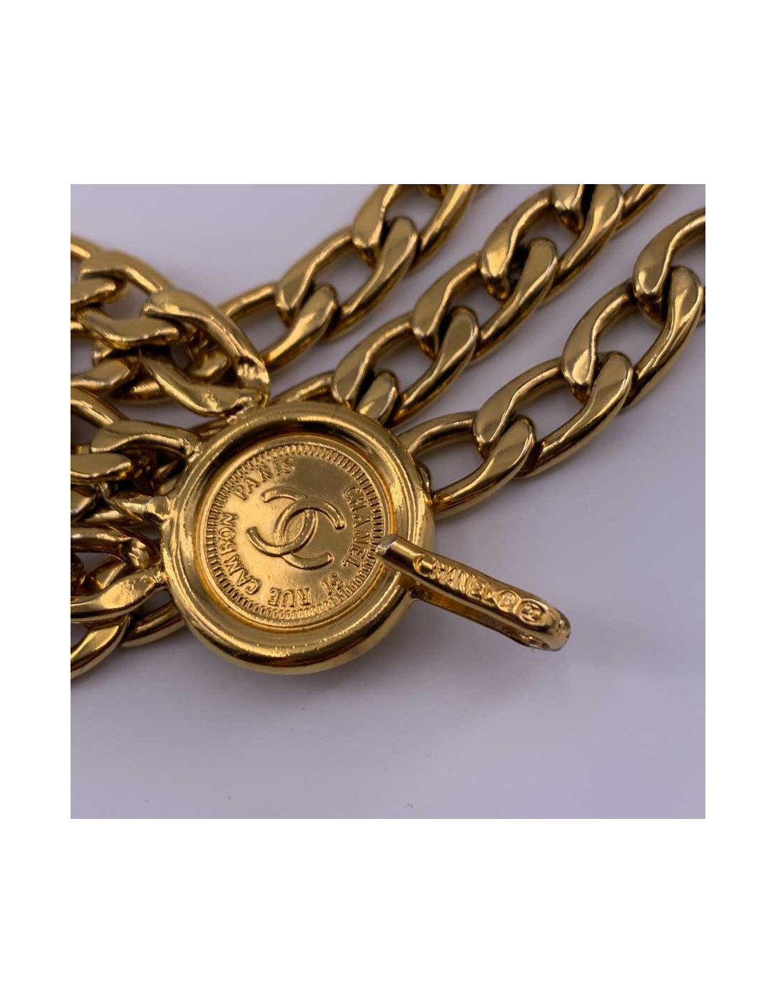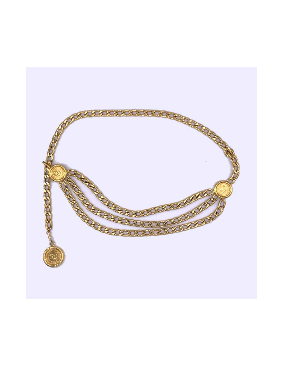 Cette ceinture est vintage, un grand classique de la Maison CHANEL. Elle a'une triple chaîne réunie de part et d'autre par deux pièces avec l'inscription CC 31 RUE CAMBON PARIS.