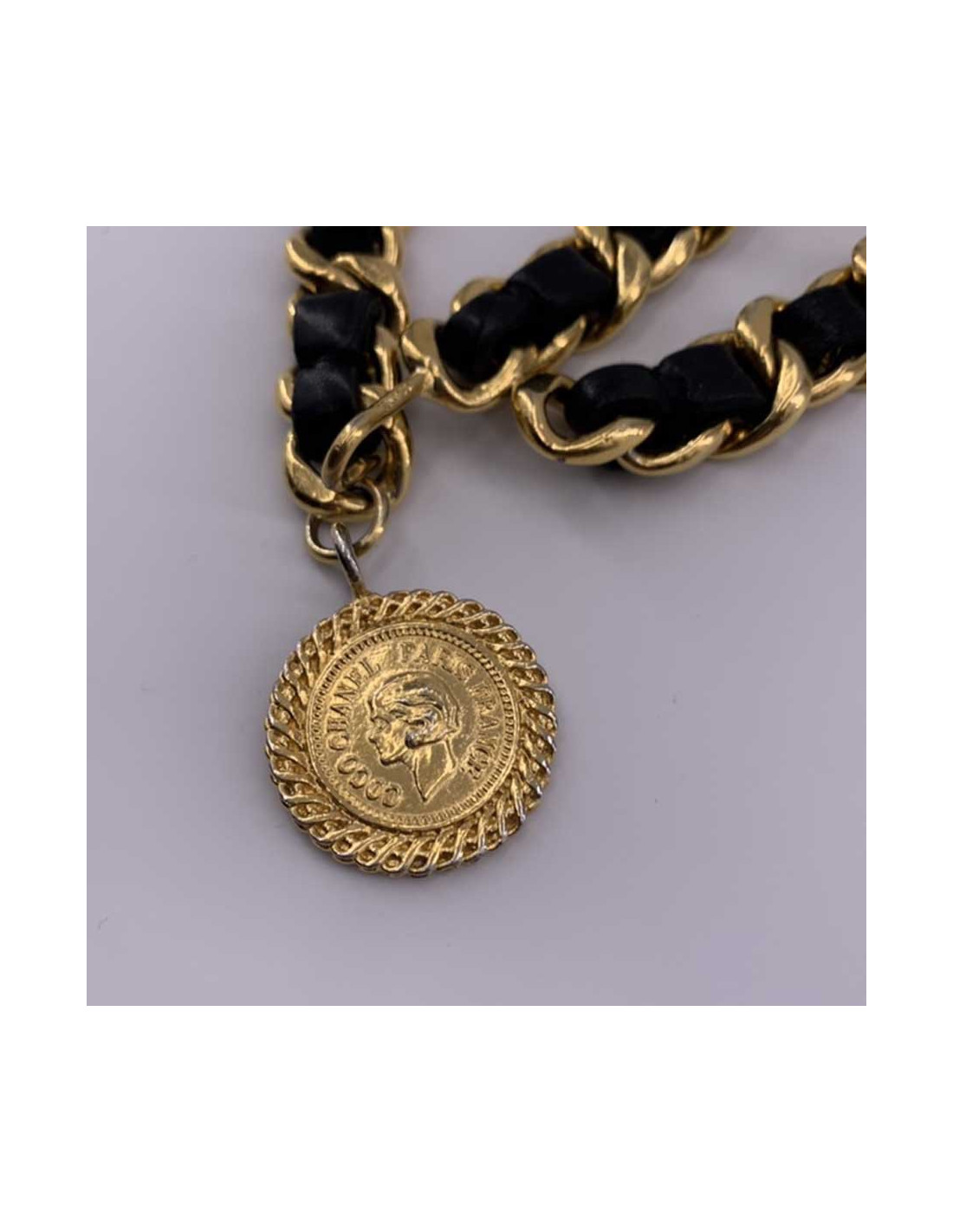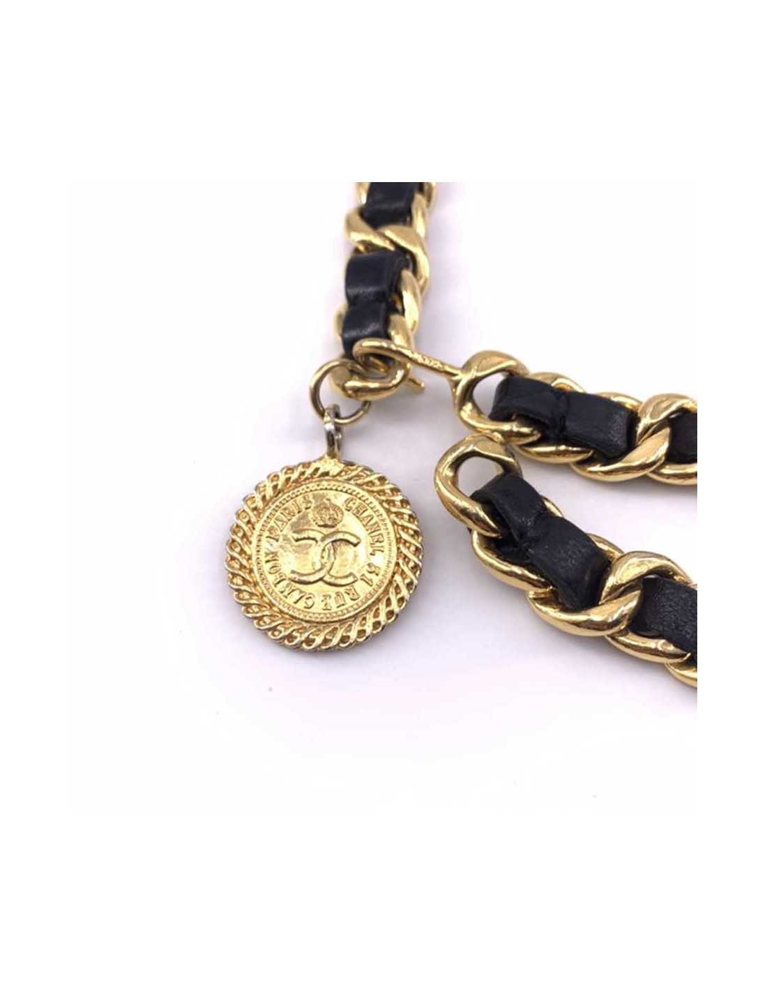 Ceinture CHANEL double rangs métal doré et cuir noir vintage