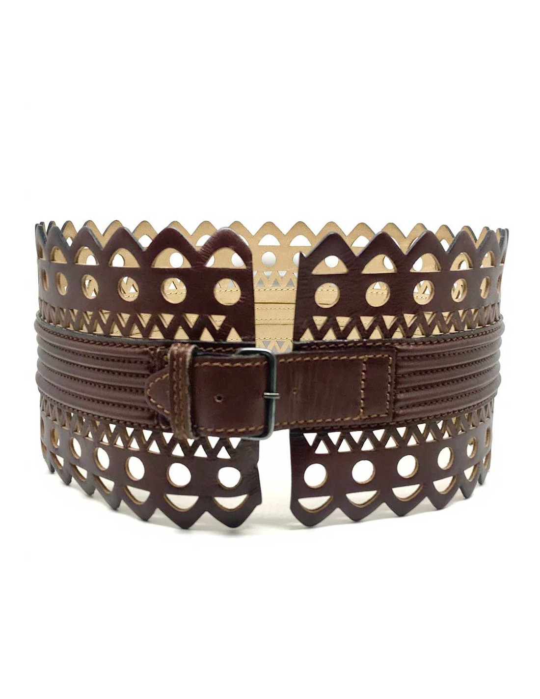 Ceinture Alaia dentelle cuir marron