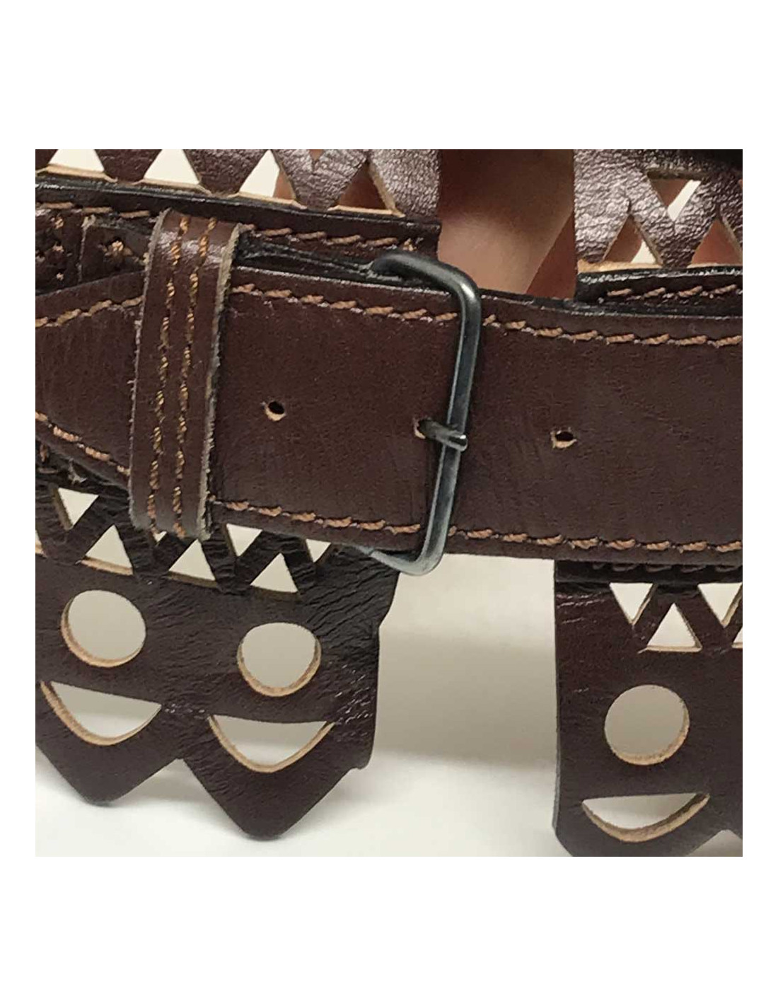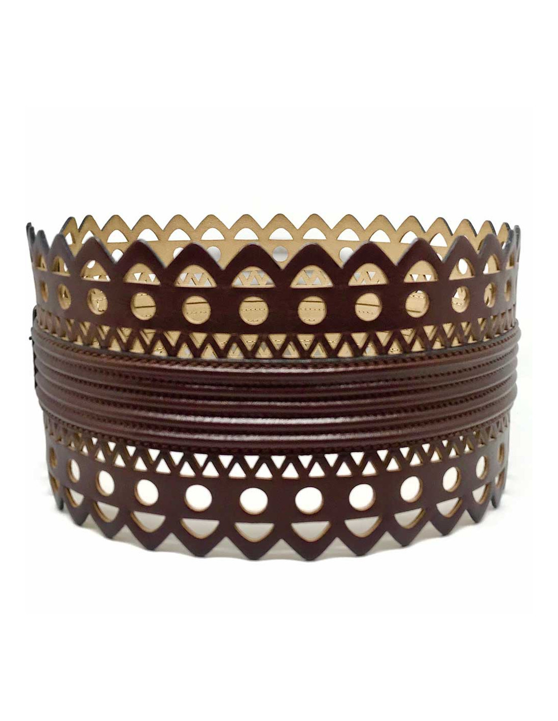 Ceinture ALAIA dentelle cuir T65 marron