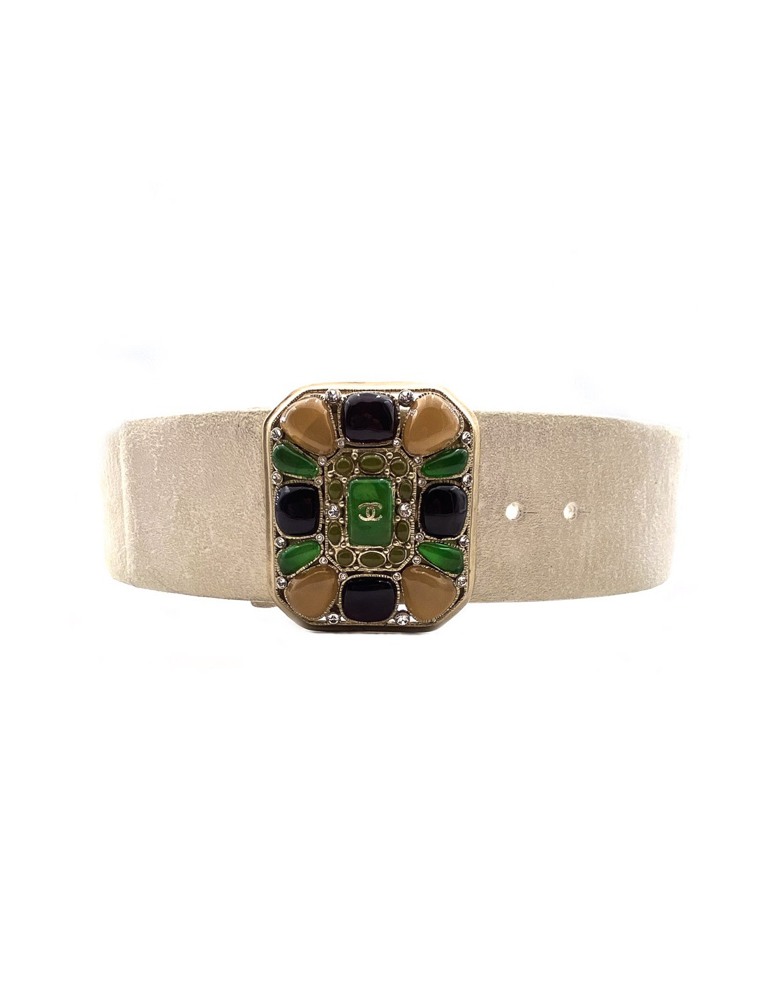 Caractéristiques de la ceinture beige CHANEL pâte de verre