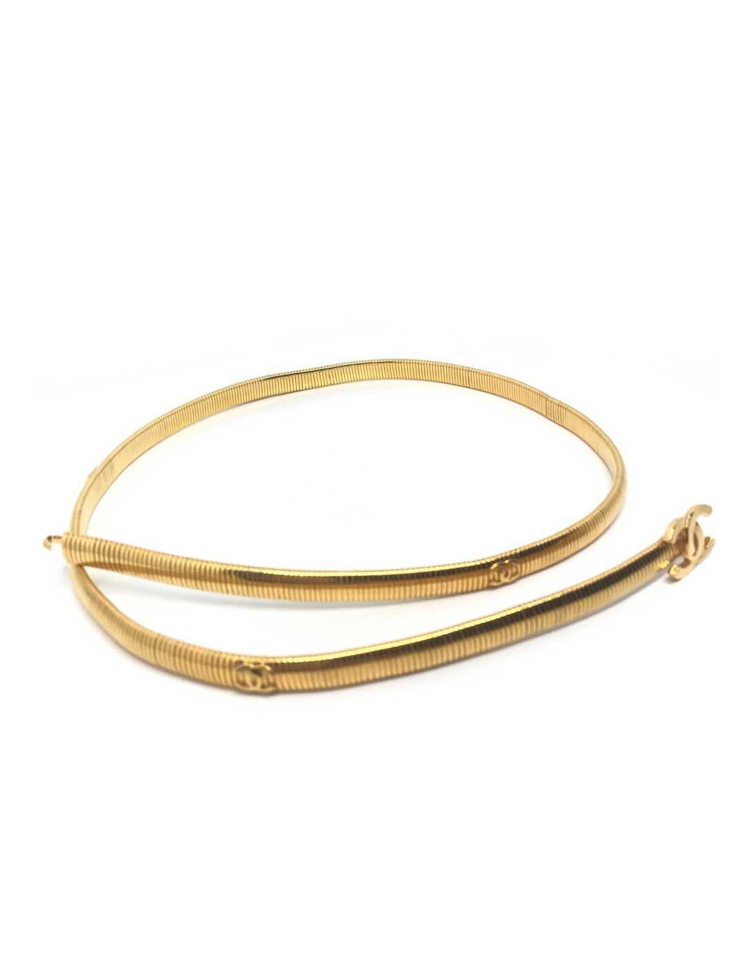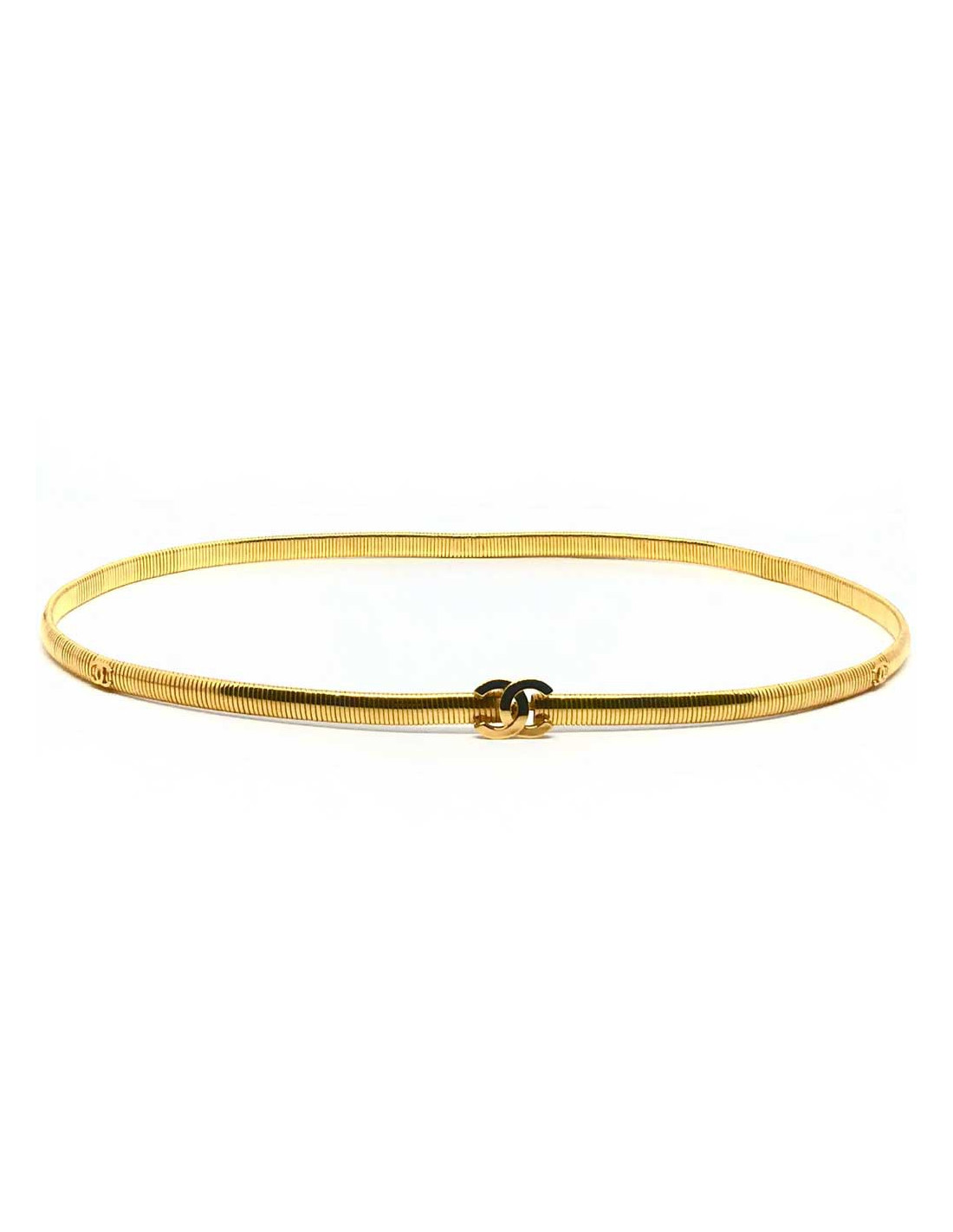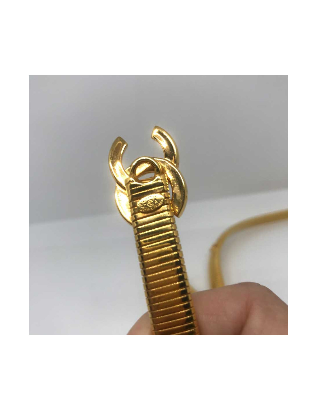 Ravissante ceinture Chanel maille serpent en métal doré. Issue de la collection Automne/Hiver 1997, cette ceinture fine pavée de CC twistera toutes vos tenues, aussi bien sur un boyfriend que sur une robe sophistiquée.