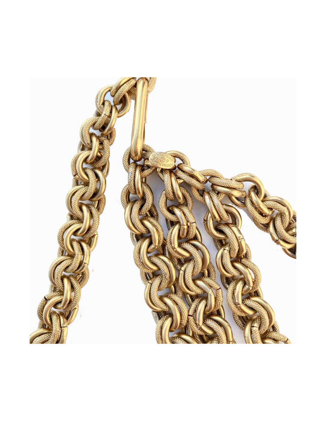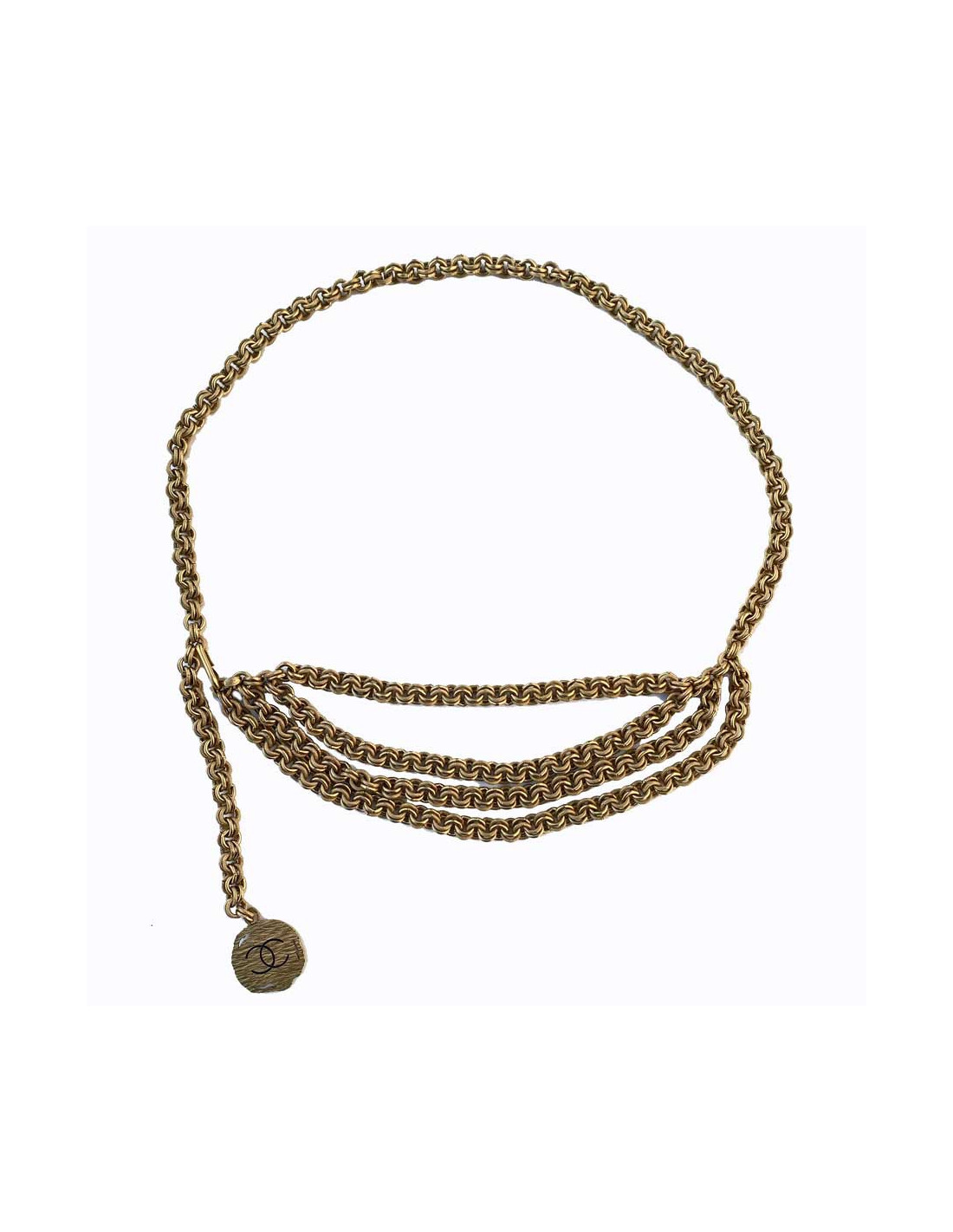 Ravissante ceinture Chanel vintage multichaines en métal or vieilli. Cette ceinture est issue de la Collection Printemps/Été 1994, c’est une vraie ceinture collector. Présence du poinçon Chanel, made in France.