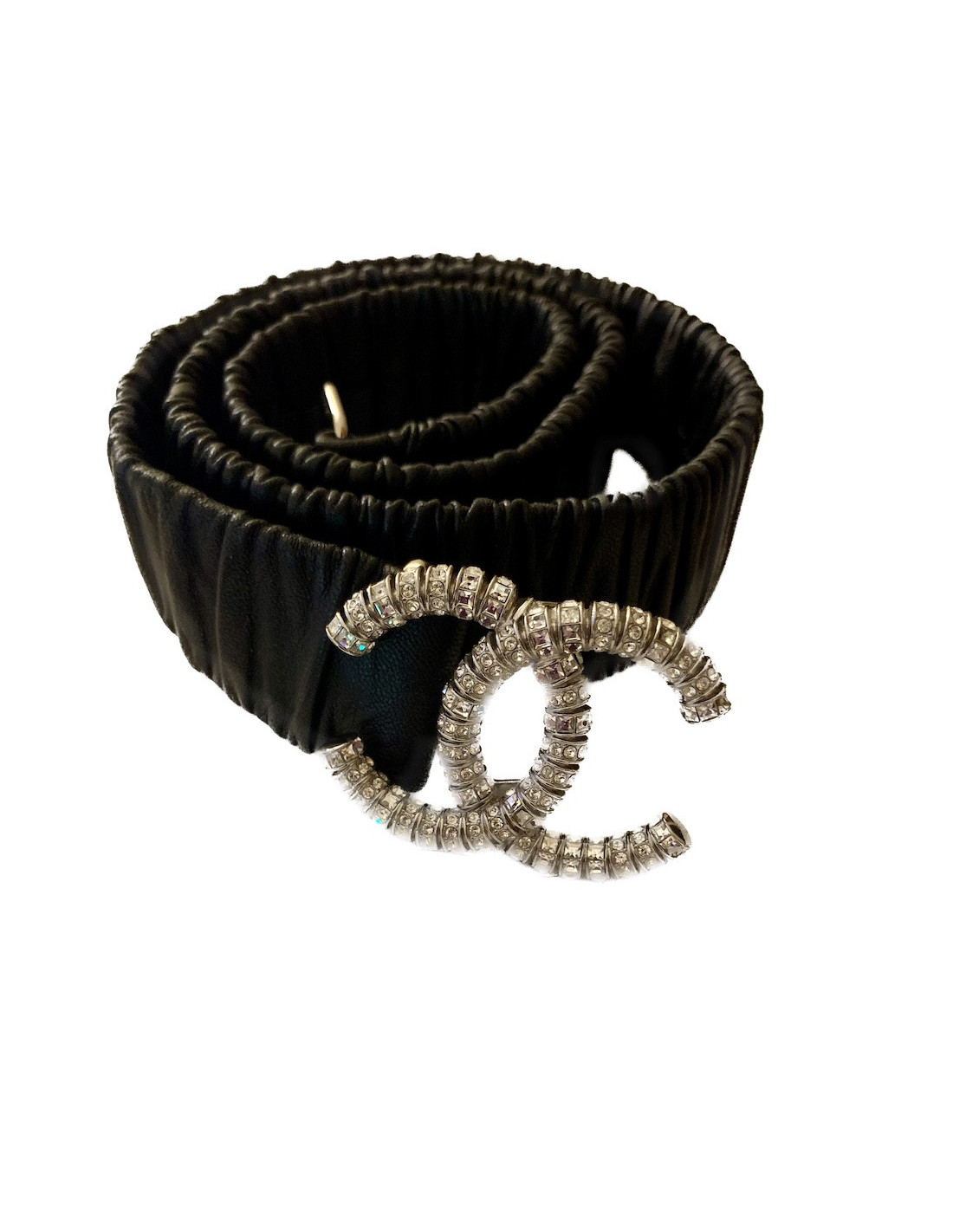 Ceinture CHANEL cuir d'agneau noir froncé