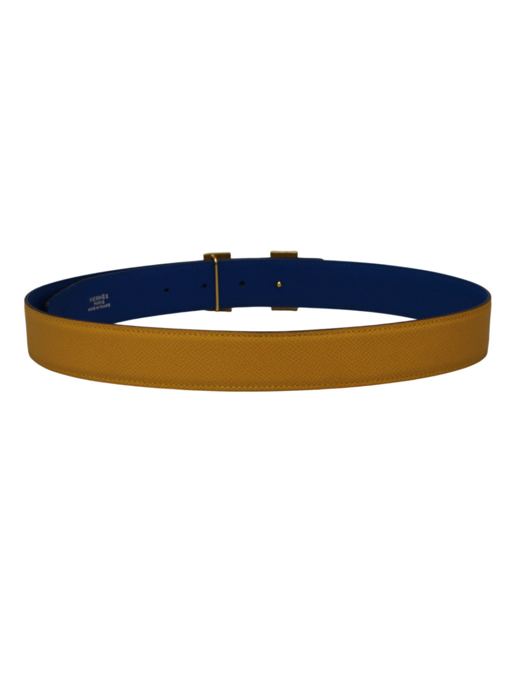 Ceinture H bicolore Hermès jaune et bleu